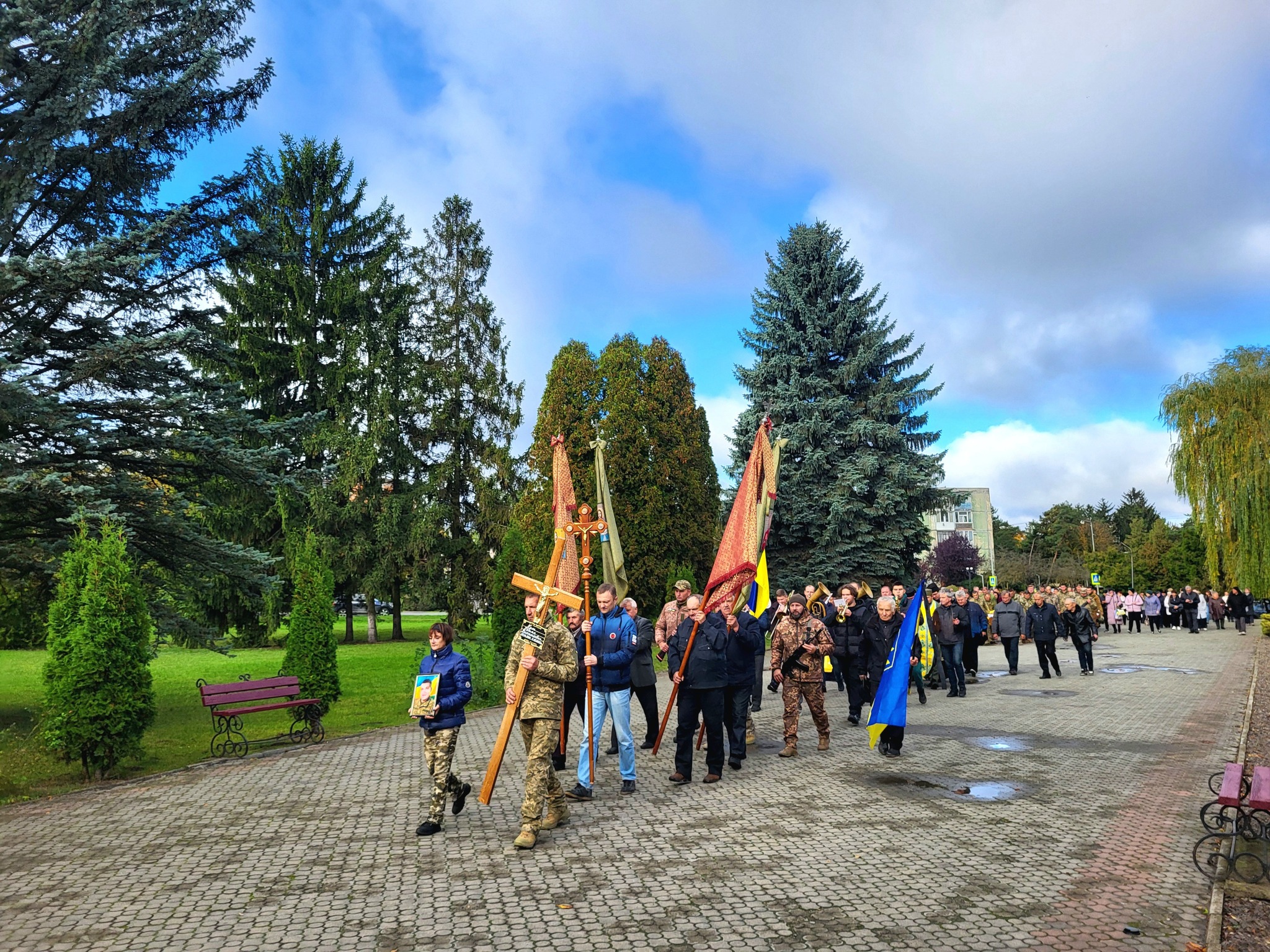 ⛪ Після церемонії в Палаці культури траурна процесія рушила до храму священномученика Йосафата. Там священнослужителі громади звершили чин похорону, молячись за спокій душі полеглого воїна, просячи Господа упокоїти його в Царстві Небеснім.