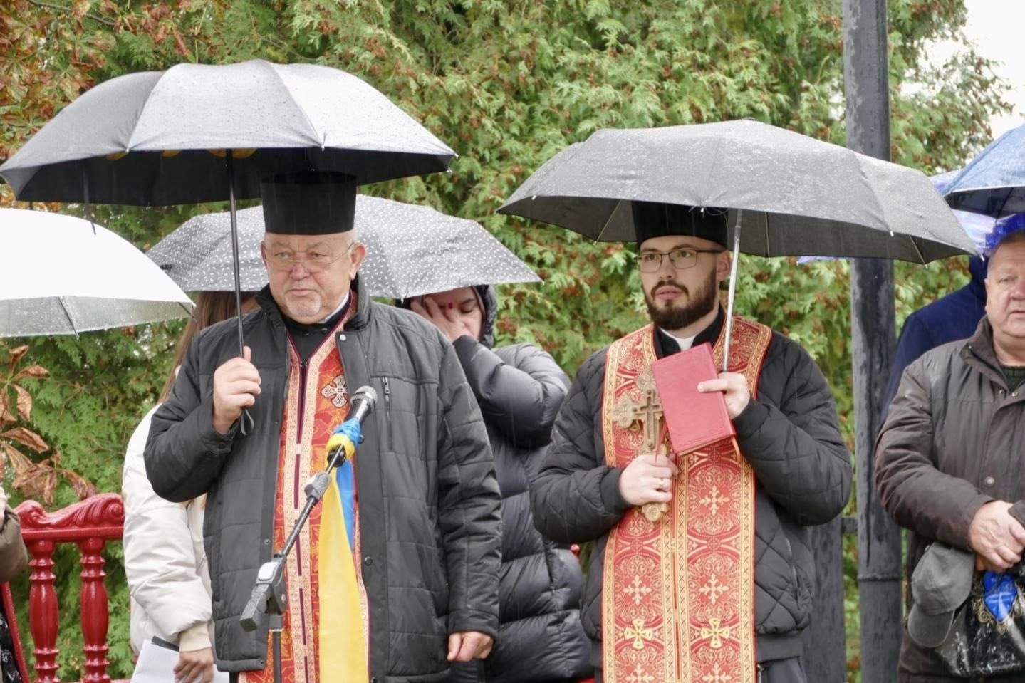 Церемонію освячення меморіалу провели шановані священнослужителі місцевого храму. До присутніх з теплими словами звернулися ветеран АТО (ООС) Олег Климишин, моя заступниця Надія Гуш та староста округу Василь Тимчишин. Усі вони наголосили на винятковій важливості цієї події для громади та всієї України.