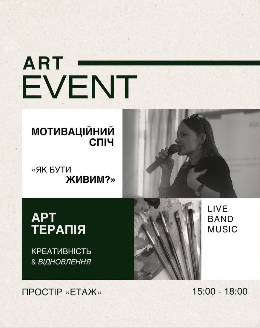 🔹15:00-18:00 – мотиваційний спіч «Як бути живим?» та арт-терапія;