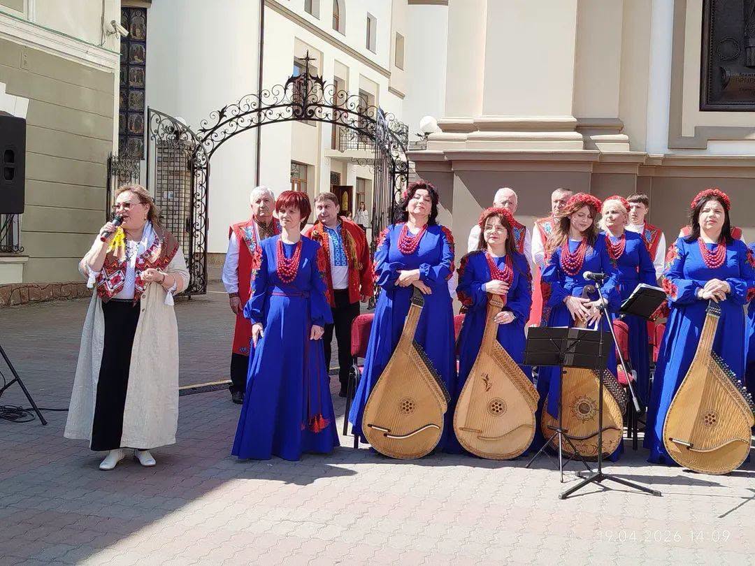 Сьогодні поруч з Архикатедральним і Митрополичим собором Воскресіння Христового УГКЦ відбулася великодня концертна програма муніципальної капели бандуристів (керівниця – Ірина Моргулець, хормейстерка – Марічка Вислюк) ККЗК «Об’єднання муніципальних мистецьких колективів м. Івано-Франківська».