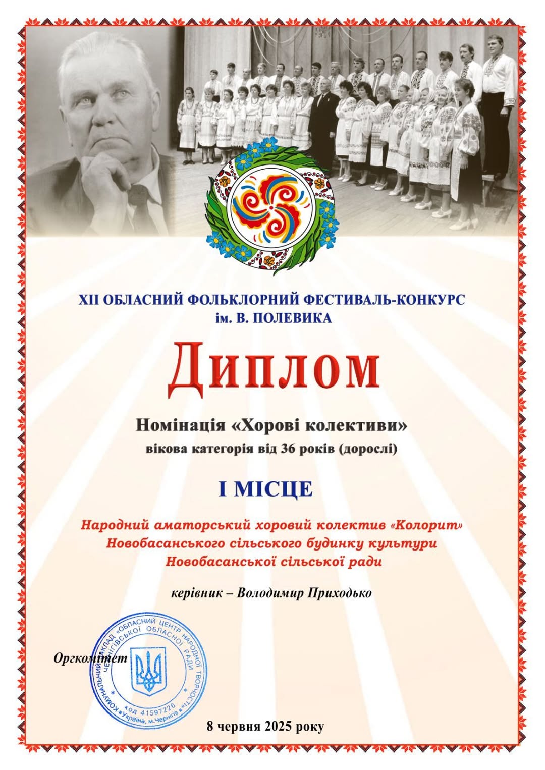 Новобасанську громаду представляв “Колорит”під керівництвом чудового керівника Володимир Приходько і зайняв