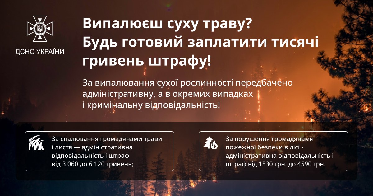 Спалювання сухостою – це не лише шкода для довкілля, але й загроза для нашого здоров’я та гаманця.