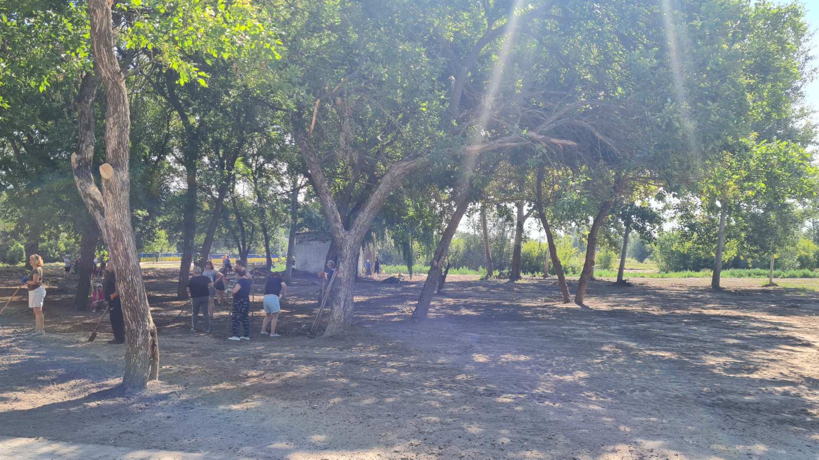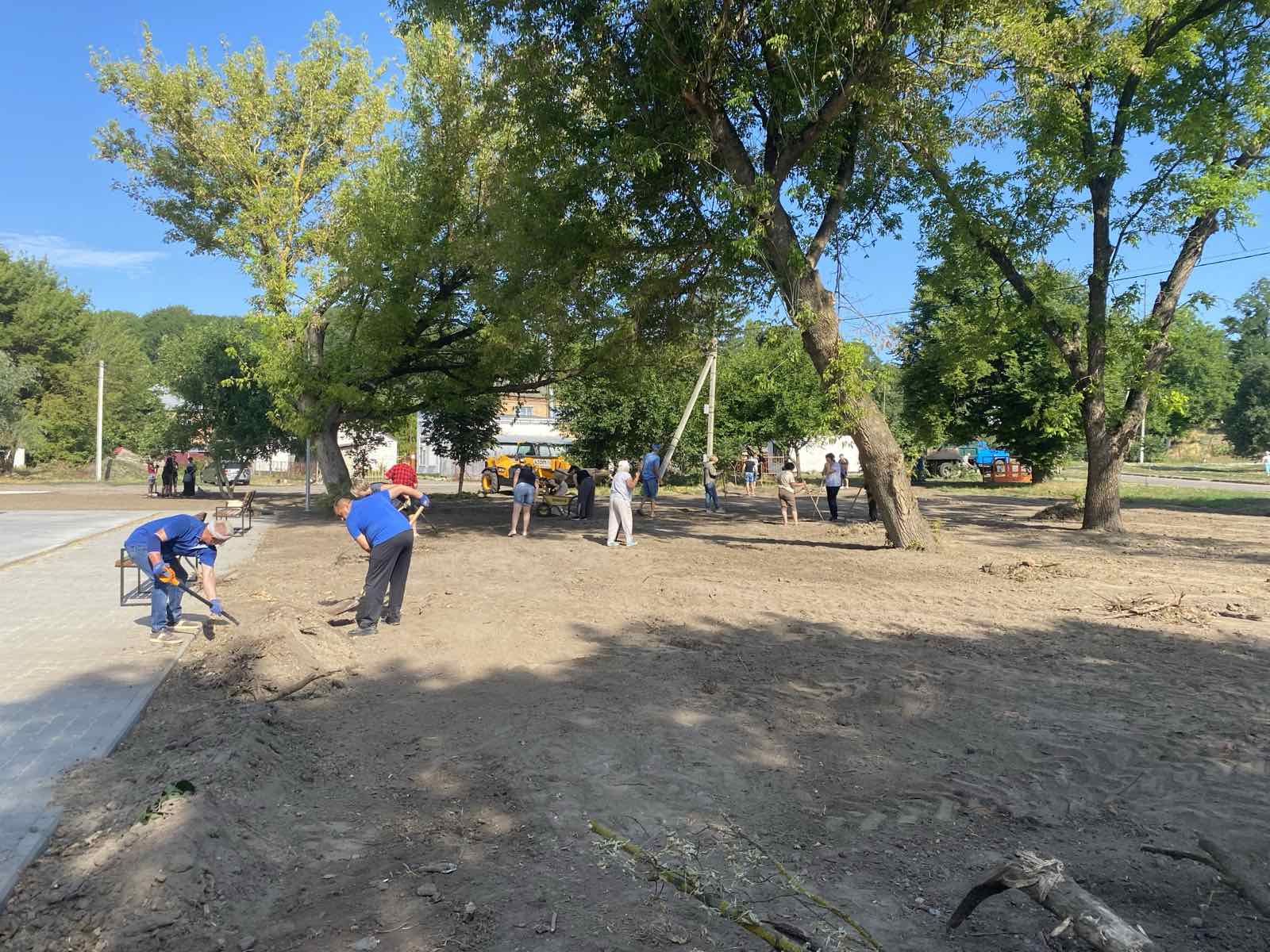 Працювали власноруч: прибирали, вирівнювали, згрібали, вивозили — усе заради чистоти, порядку й затишку. Люди і техніка об’єднали зусилля заради спільної мети — зробити парк охайним і приємним для відпочинку.