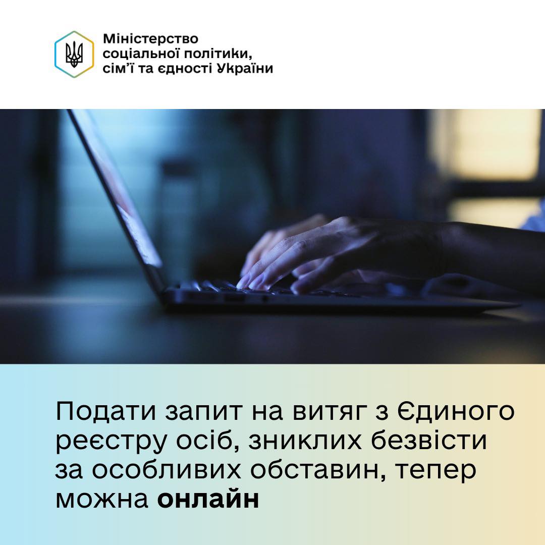 🌐 Нова послуга онлайн: подати запит на витяг з Єдиного реєстру осіб, зниклих безвісти за особливих обставин, стало простіше