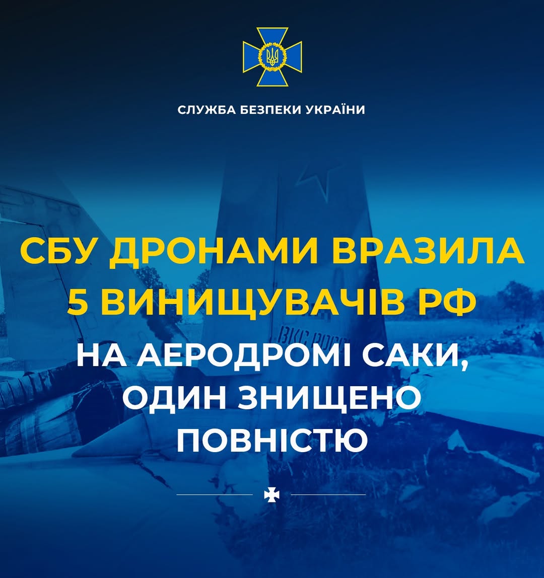 Нова спецоперація СБУ: безпілотники Служби вразили 5 російських винищувачів на аеродромі Саки, один літак знищено повністю