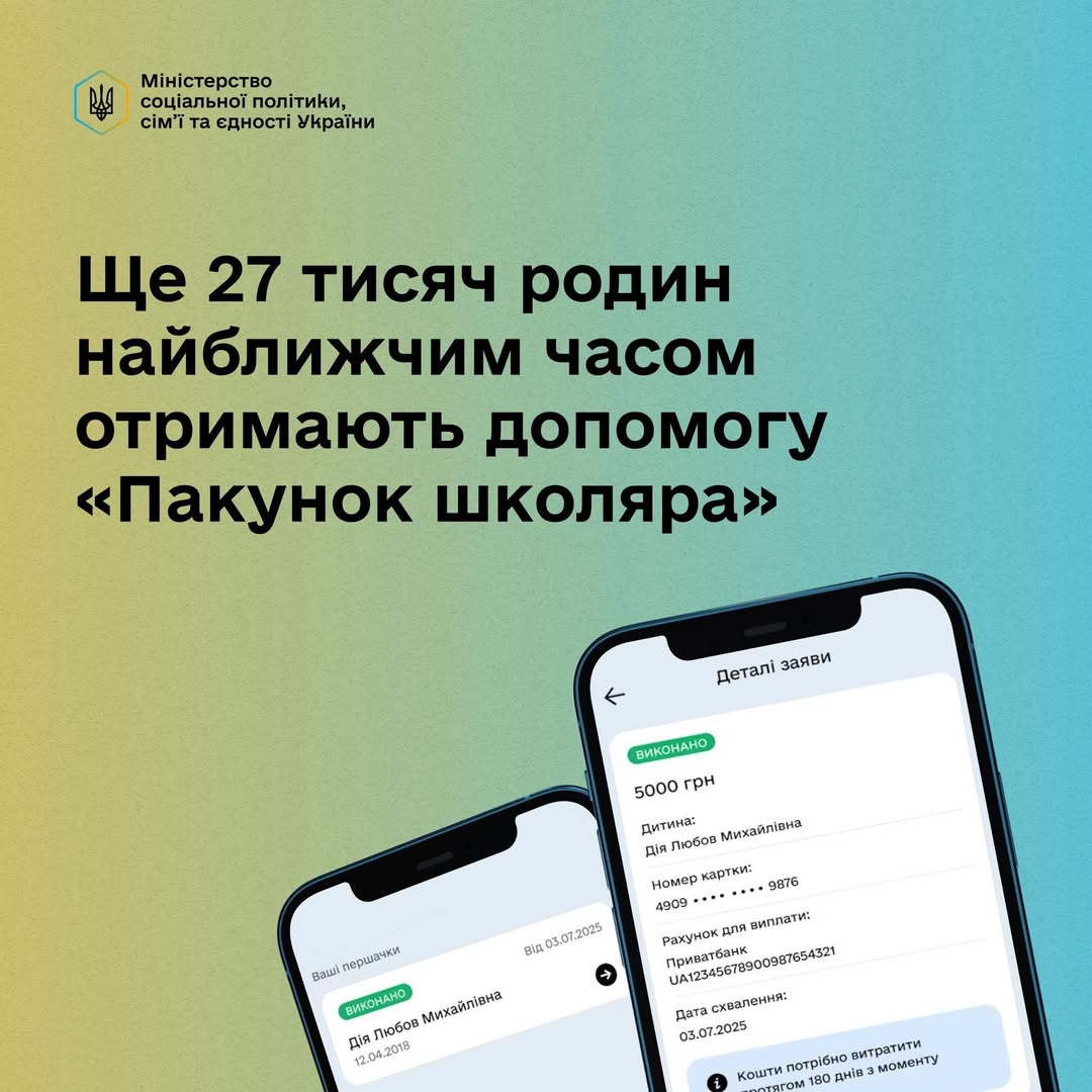 🎒 Розпочато нову хвилю виплат за державною програмою «Пакунок школяра», яка надасть фінансову допомогу 27 тисячам українських родин на загальну суму понад 138 мільйонів гривень. Це значна підтримка для сімей, що готують своїх дітей до нового навчального року.