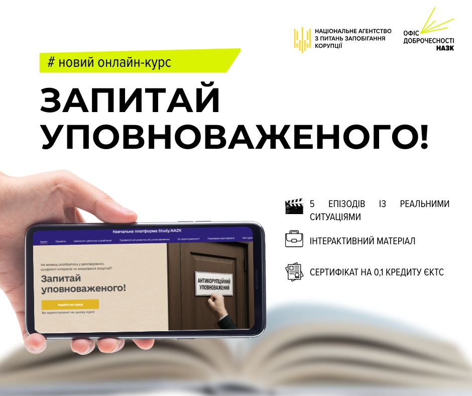 📢 Новий онлайн-курс від Офісу доброчесності НАЗК «Запитай уповноваженого!» тепер доступний на платформі Study.NAZK (https://study.nazk.gov.ua/)!