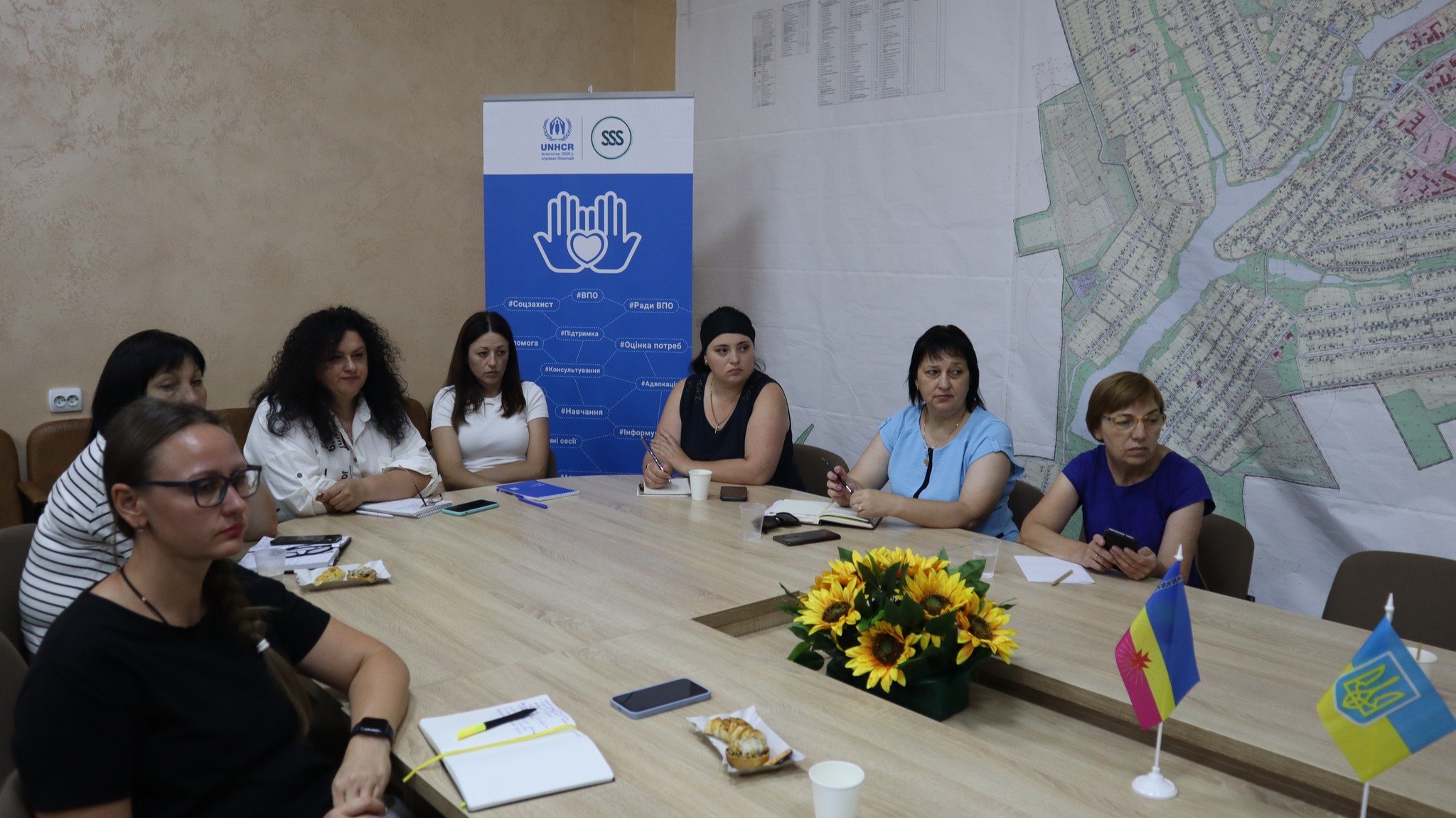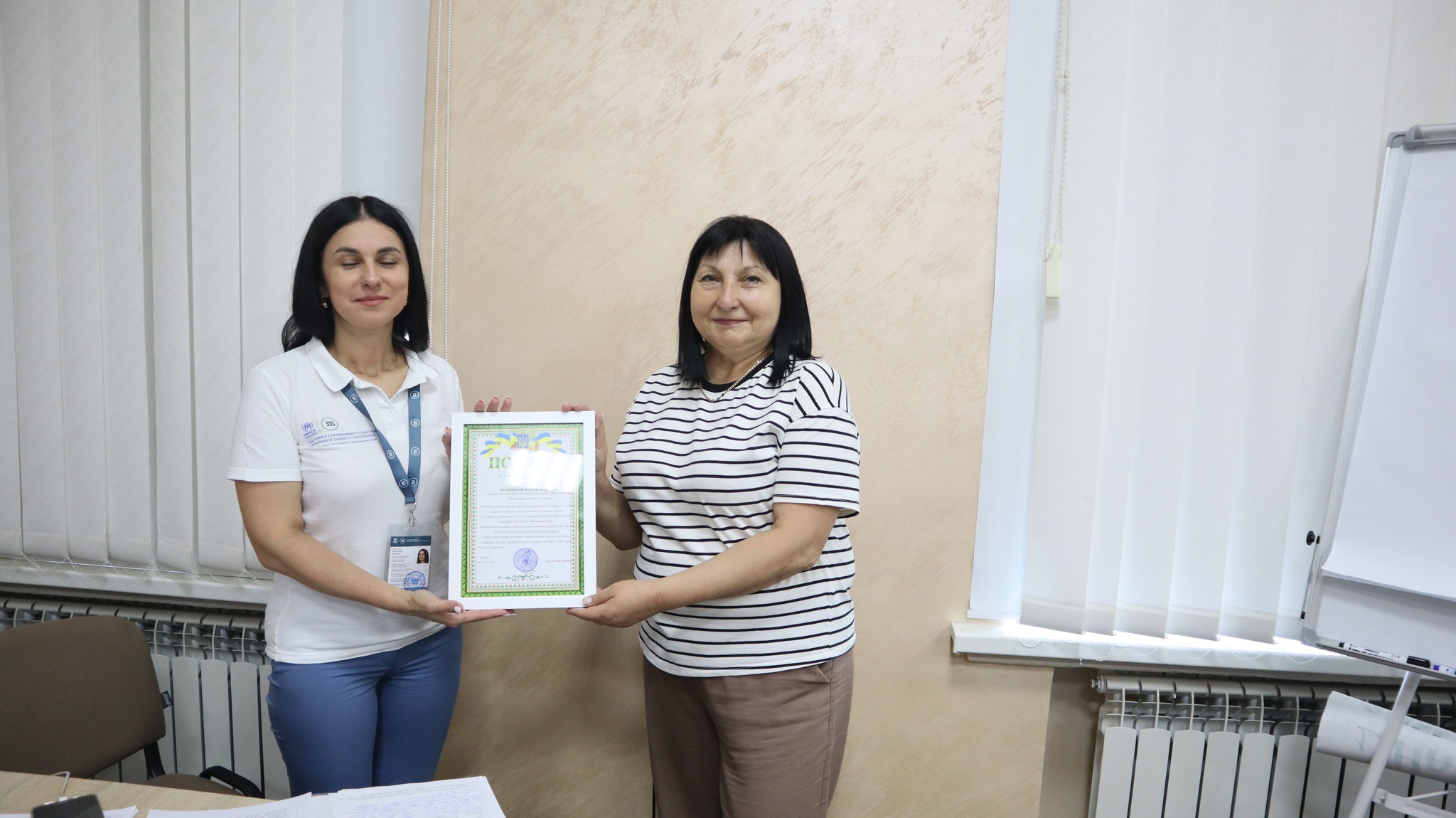 Перед початком роботи, заступник міського голови Людмила Сотник від імені міського голови Максима Лагодієнка висловила щиру подяку Вершиніній Вікторії Андріївні, виконавчому директору Благодійної організації “Благодійний фонд “Стабілізейшн Суппорт Сервісез”. Подяка вручена за вагому підтримку відділу соціального захисту населення в рамках проєкту “Підтримка спроможності системи соціального захисту населення щодо реєстрації внутрішньо переміщених осіб”.