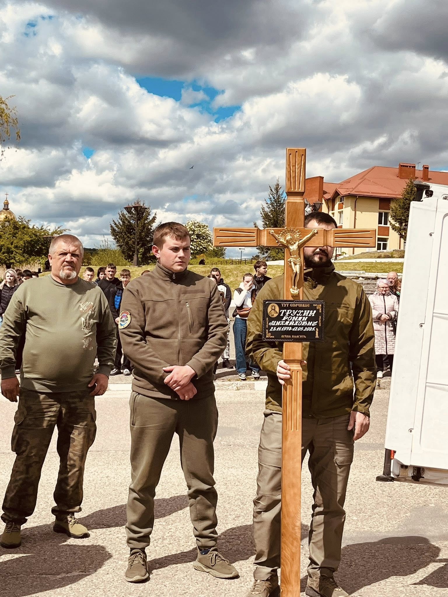 Після молитви на «Алеї Героїв», скорботний кортеж вирушив до церкви «Воздвиження Животворящого Чесного Хреста, що знаходиться в с. Берездівці. Тут відбудеться прощання з Героєм, де кожен зможе віддати останню шану Роману Трухиму.