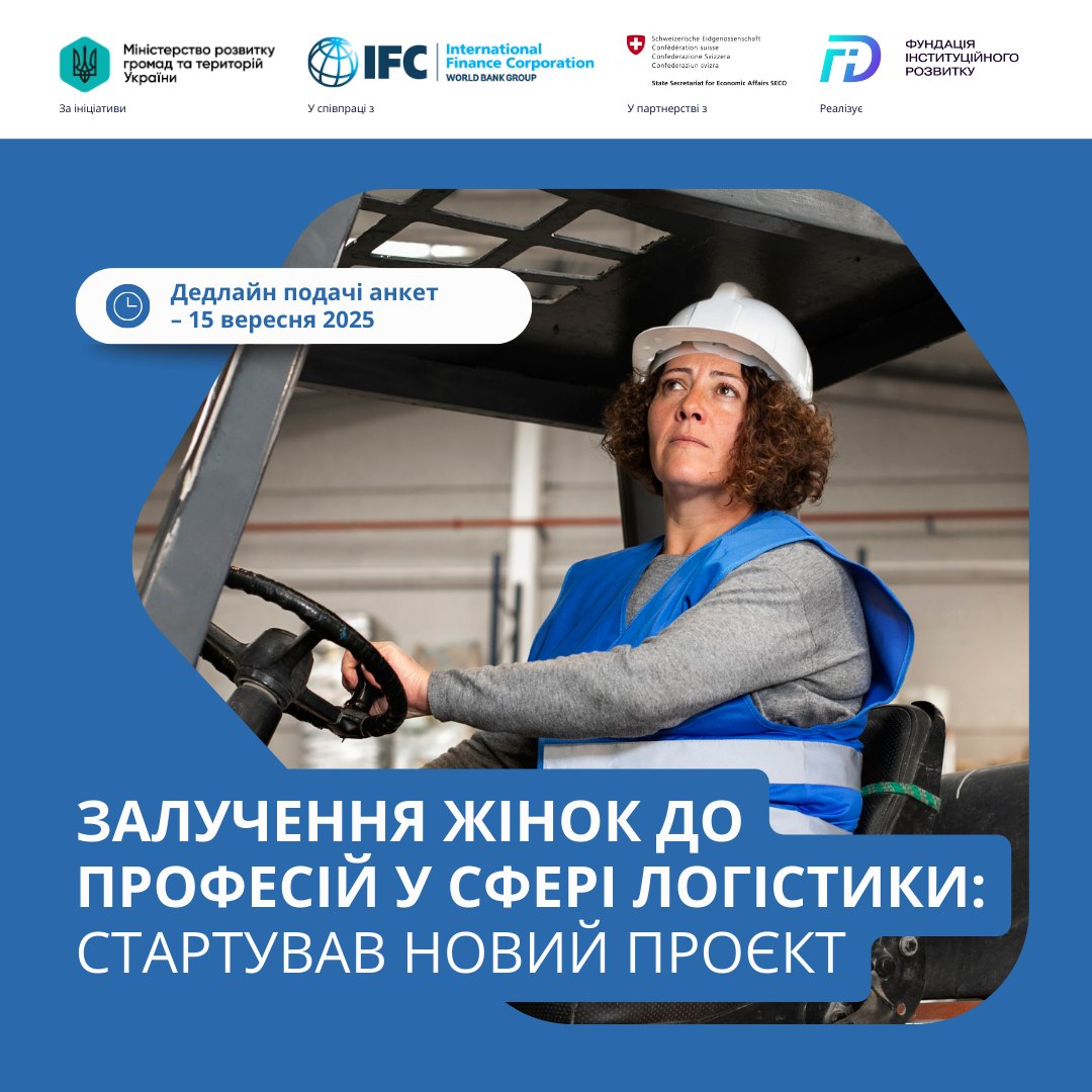 Проєкт «Залучення жінок до професій у сфері логістики» реалізується ГО «Фундація інституційного розвитку» за ініціативи Міністерства розвитку громад та територій України, у співпраці з Міжнародною фінансовою корпорацією (IFC), яка є членом Групи Світового банку, та за партнерства з Державним секретаріатом Швейцарії з економічних питань (SECO). Це комплексна програма, спрямована на посилення ролі жінок у ключових секторах економіки.