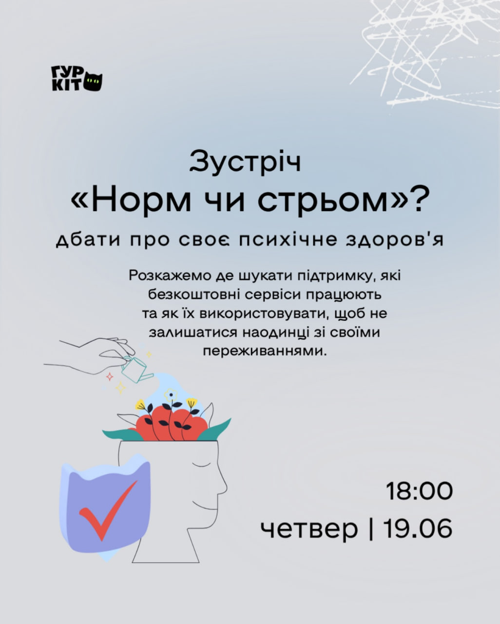 На зустрічі ми обговоримо важливі питання, пов’язані з психічним здоров’ям: