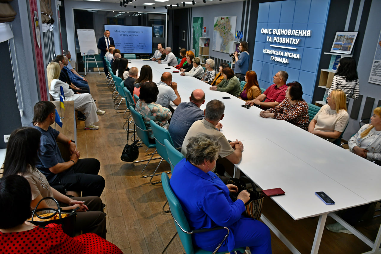 В Офісі відновлення та розвитку відбулася зустріч із представниками освітньо-спортивної спільноти Ніжина: тренерами, керівниками спортивних секцій, директорами шкіл та представниками управління освіти. Обговорювалися важливі питання спорту, включаючи досягнення міністерства, плани на майбутнє та ключові виклики, що стоять перед спортивною галуззю.