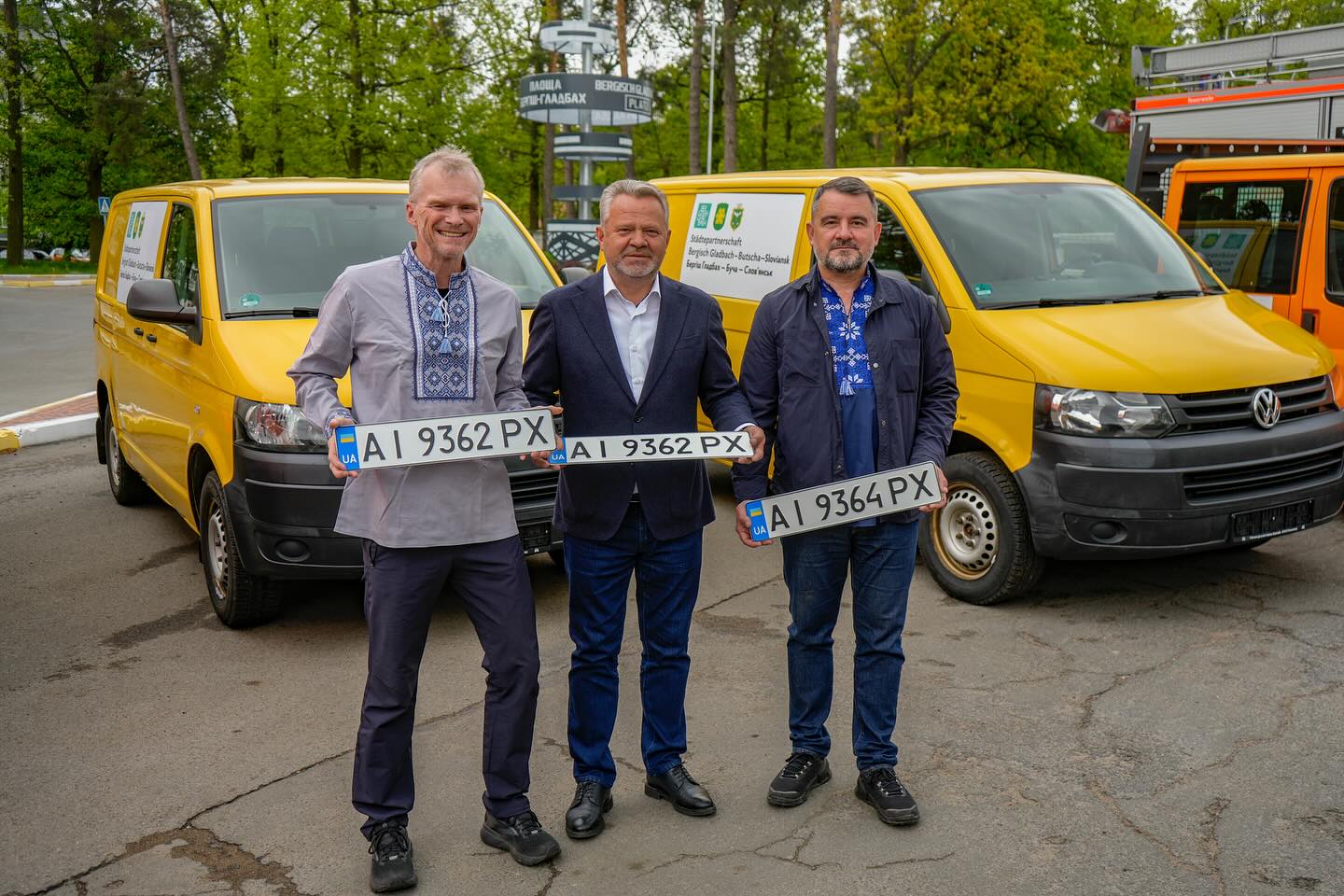Передача техніки відбулася за участі ключових фігур: Бучанського міського голови Анатолія Федорука, мера Бергіш-Гладбаха Франка Штайна та міського голови Слов’янська Вадима Ляха. Ця подія підкреслює міцні партнерські відносини між містами та їхню спільну підтримку України.