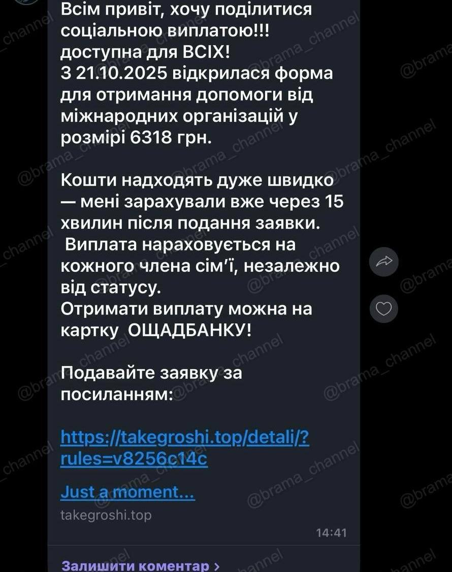 ❗️ УВАГА: Шахрайська схема у Viber – «Фінансова допомога 2025 від ООН»!