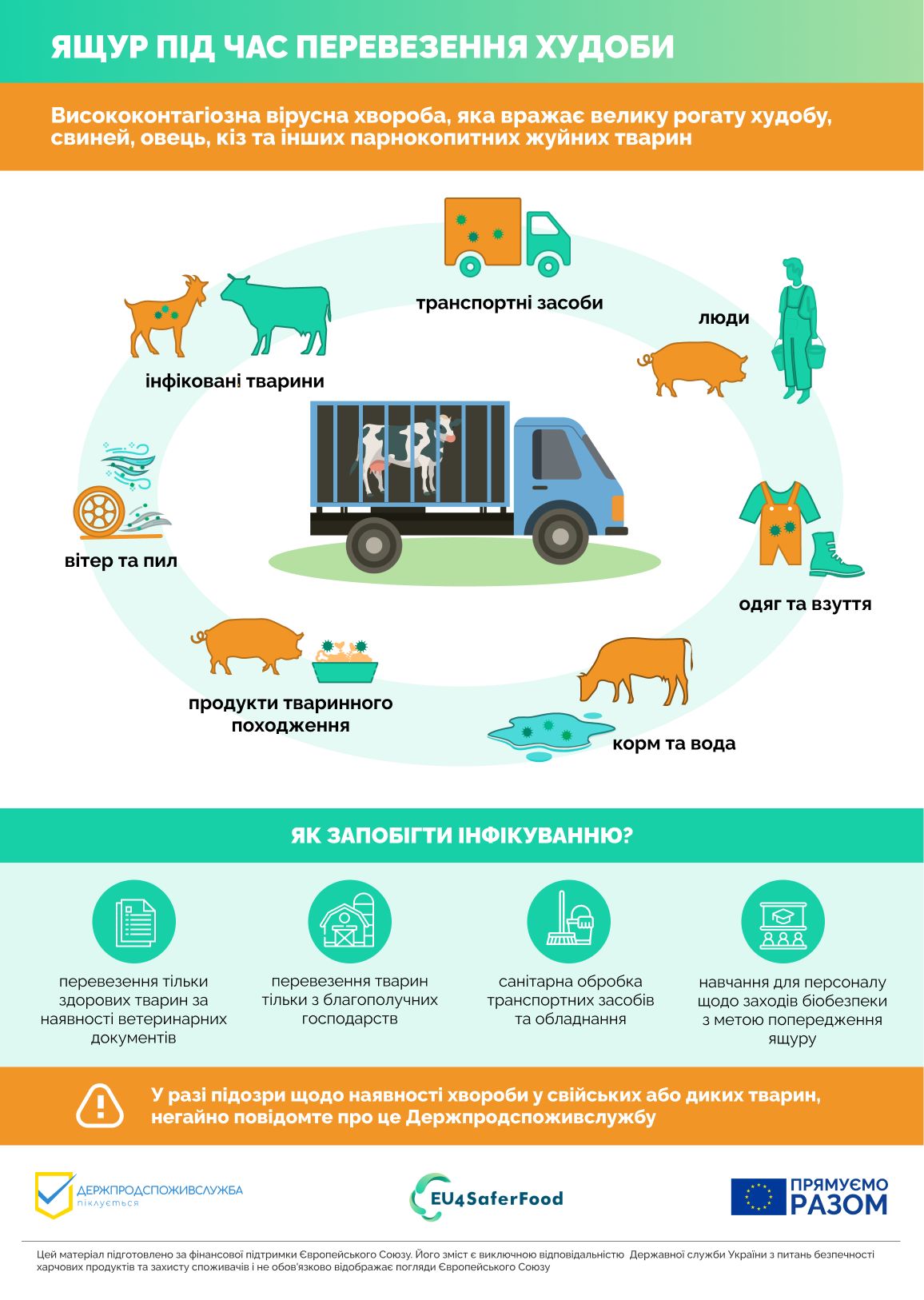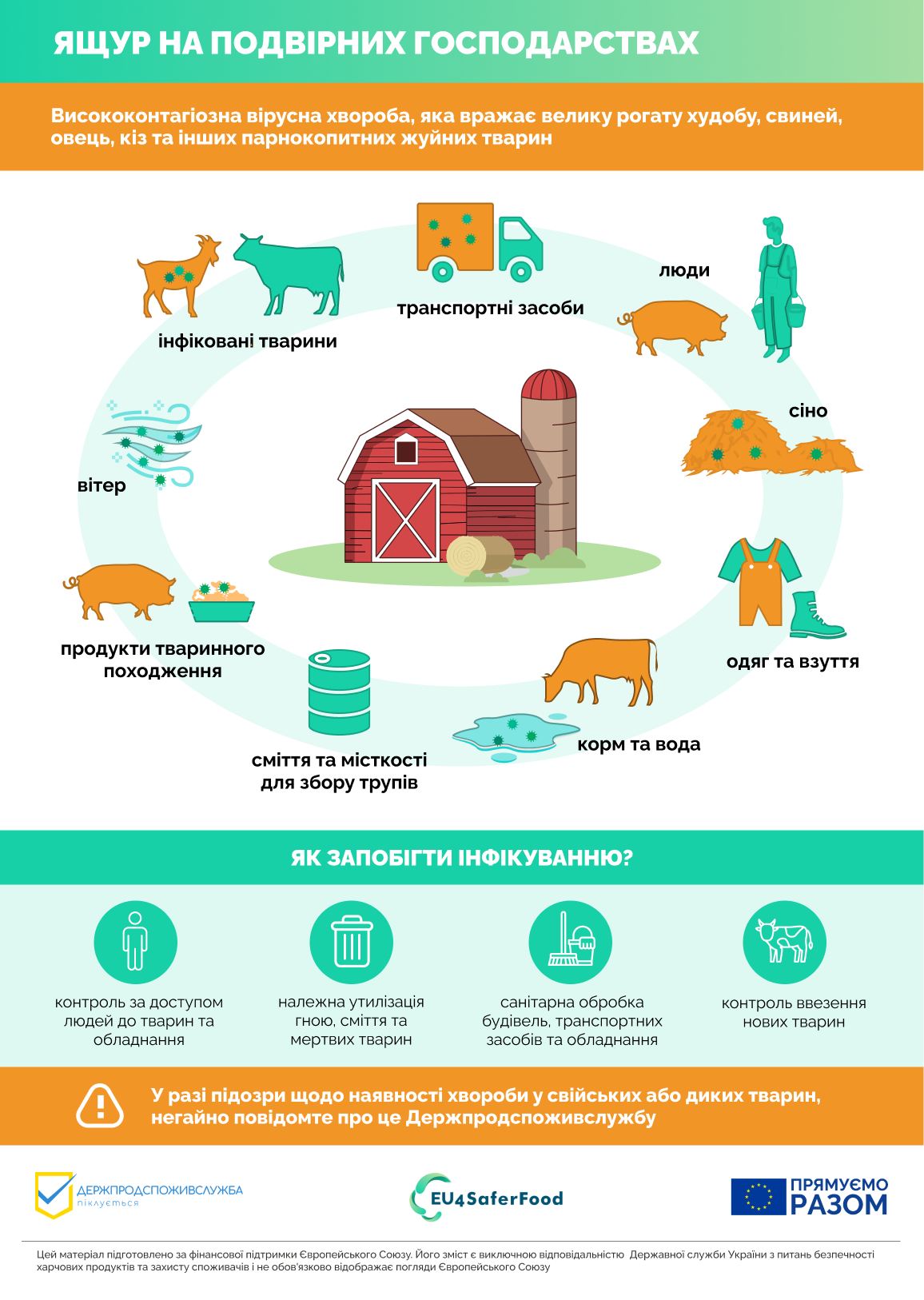дотримуватись суворого контролю допуску людей до стада (заборона стороннім особам потрапляти на територію ферм та в’їзд машин, які перебували за межами господарства, без дезінфекції);