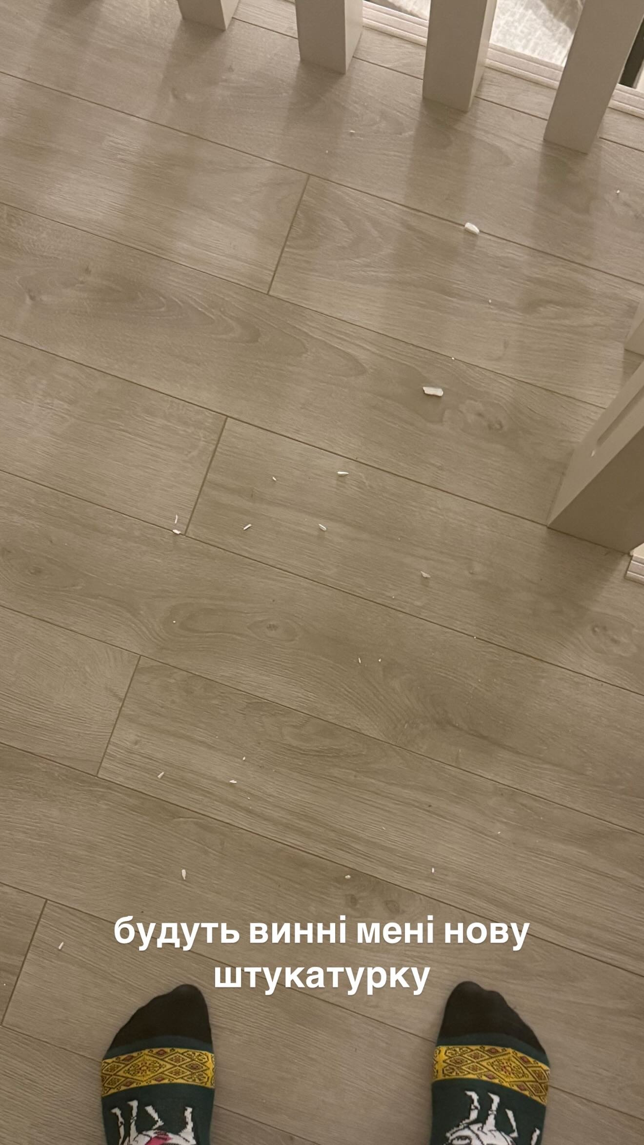 Як виявилося, внаслідок вибухової хвилі в будинку Міши Лебіги, який він орендує під Києвом, осипалася штукатурка.