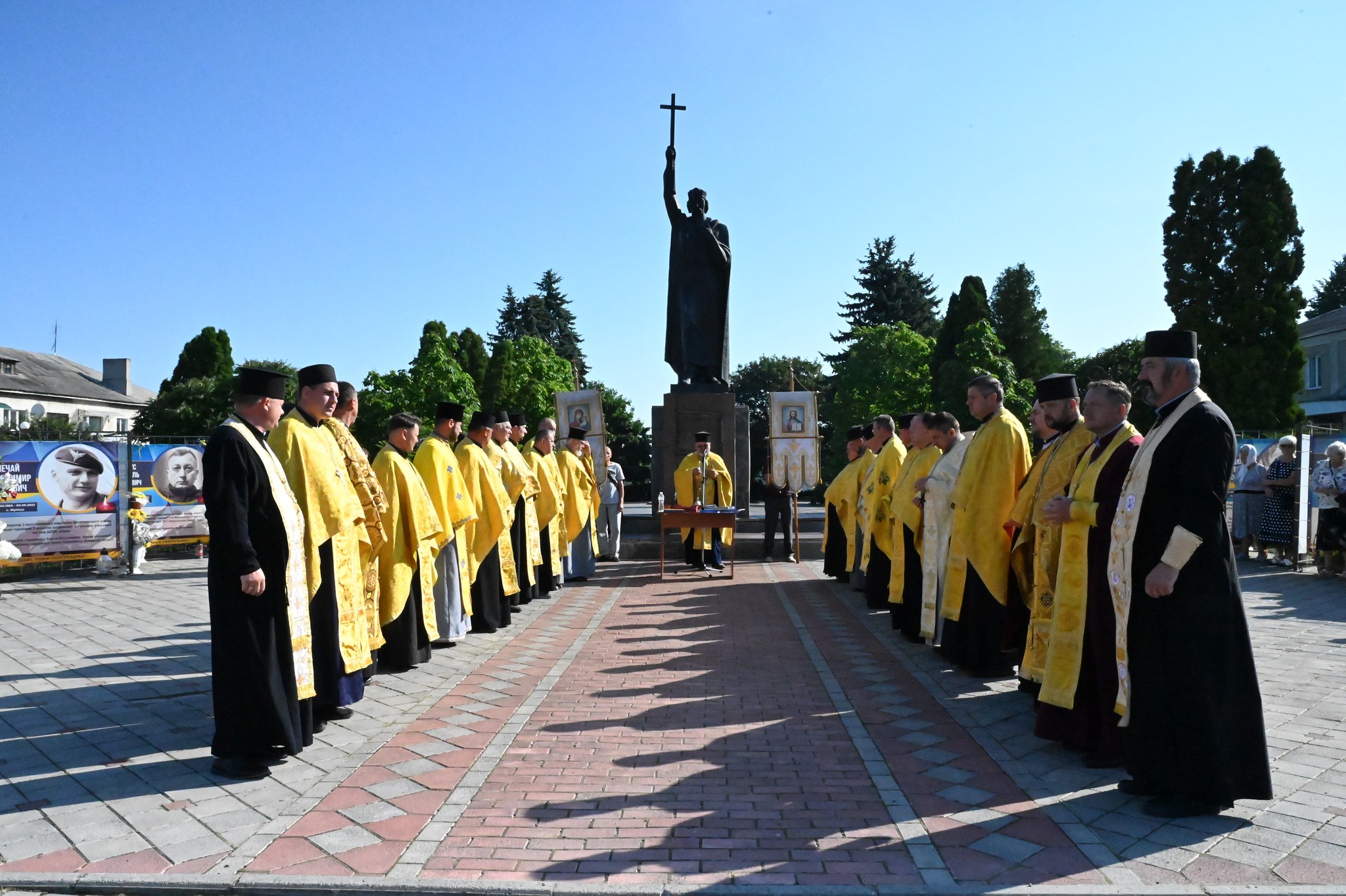 Сьогодні, 15 липня, на центральній площі міста відбувся молебень, приурочений Дню Української Державності, 1037-літтю хрещення Київської Руси-України та освячення банерів на Алеї пам’яті.