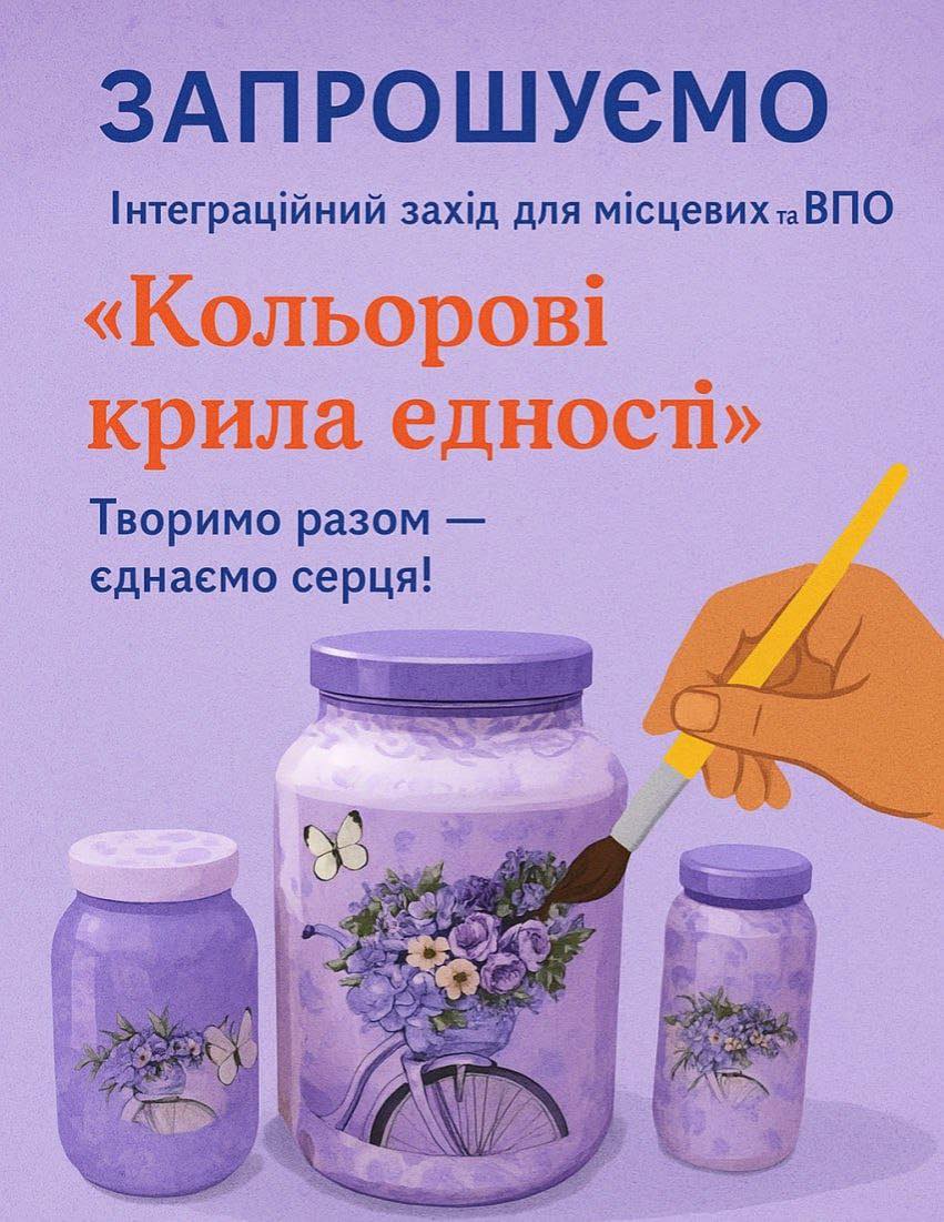 Чекаємо дорослих та дітей — як місцевих жителів, так і внутрішньо переміщених осіб — на творчу зустріч, де ми разом поринемо у світ яскравих фарб та візерунків техніки декупаж.