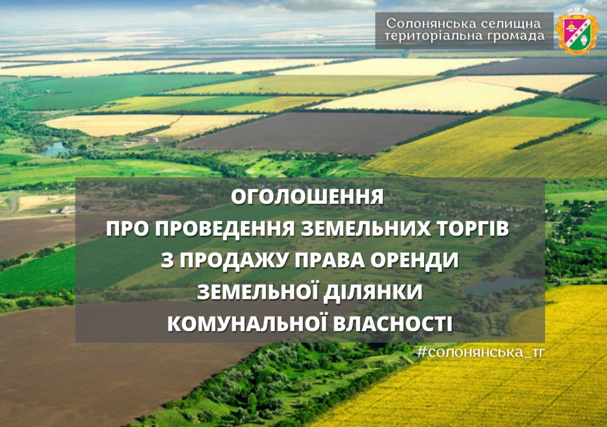#оголошення Солонянська селищна рада оголошує про проведення земельних торгів…