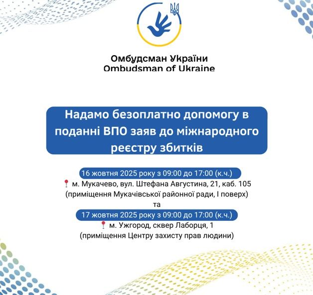 ℹ️ **Важливо:** Консультації надаються безоплатно. Запрошуємо всіх внутрішньо переміщених осіб, які бажають подати заяву до Міжнародного реєстру збитків або отримати роз’яснення щодо процедури.