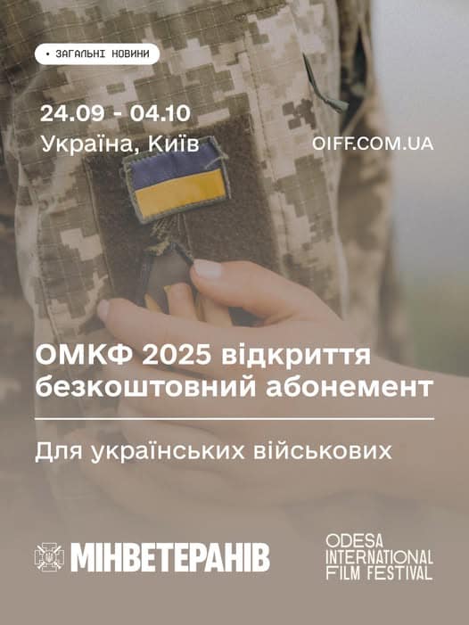 🎬 Одеський міжнародний кінофестиваль (ОМКФ) надає безкоштовний доступ для військових, відзначаючи їхній внесок у розвиток української культури.