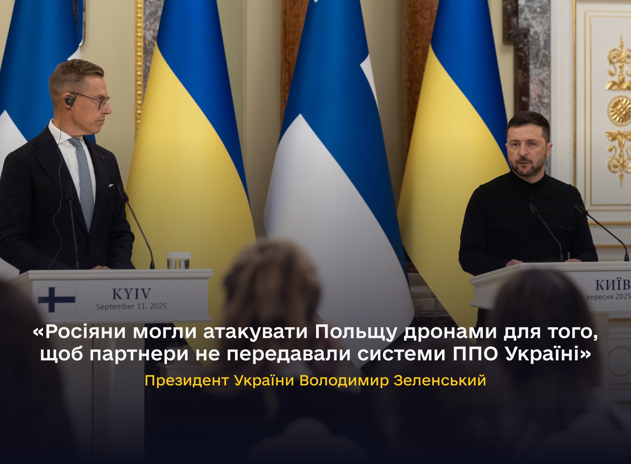 Президент України Володимир Зеленський висловив припущення щодо можливих мотивів нічної атаки Росії на Польщу. За його словами, яка була здійснена за допомогою дронів, цей напад міг бути спробою вплинути на міжнародних партнерів України. Мета, ймовірно, полягала в тому, щоб перешкодити передачі Україні критично важливих систем протиповітряної оборони (ППО) напередодні зимового періоду.