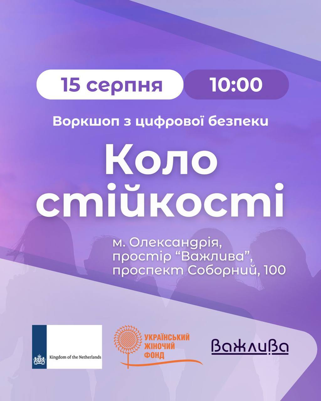 15 серпня з 10:00 до 14:00 у просторі підтримки «Важлива» (проспект Соборний, 100) відбудеться навчання в межах проєкту «Коло стійкості».