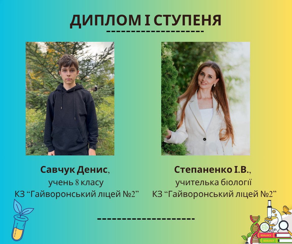 Вітаємо переможців І етапу олімпіади з біології та їхніх шанованих наставників із заслуженими досягненнями! Ваша праця та відданість справі є надзвичайно важливими для розвитку юних талантів. Бажаємо вам не зупинятися на досягнутому, постійно відкривати нові горизонти науки та впевнено прямувати до нових інтелектуальних вершин 🚀📚.
