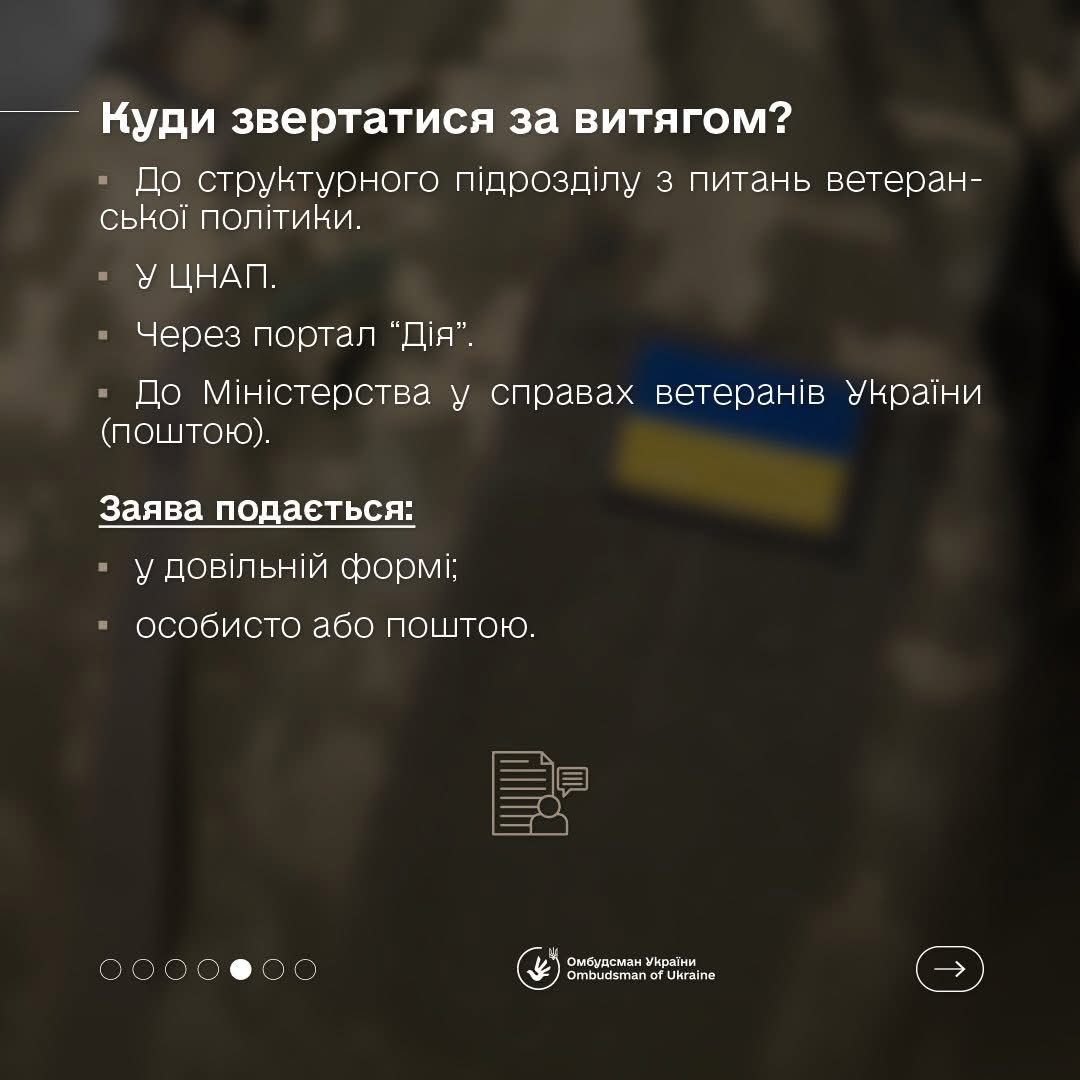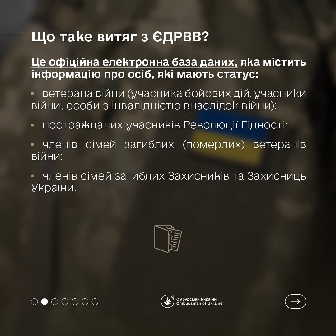 Витяг з ЄДРВВ: статус ветерана та пільги