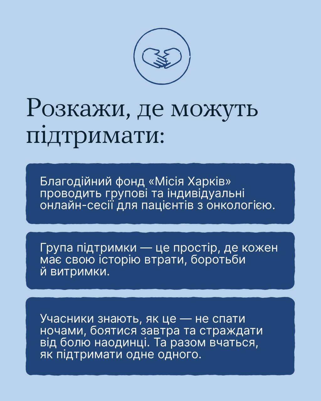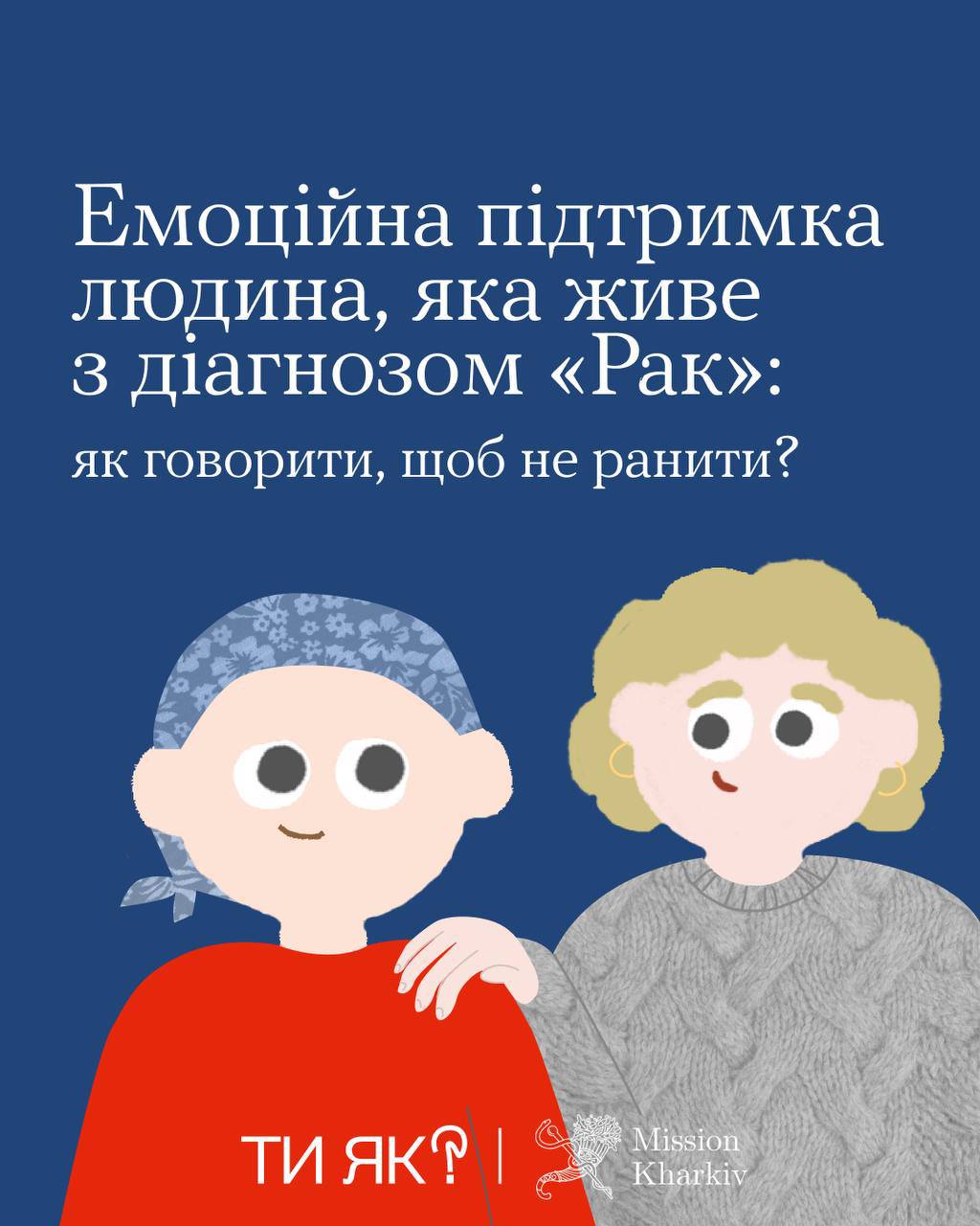 Діагноз «онкологія» кардинально змінює життя не тільки пацієнта, але й його найближчих – родини, друзів, колег. У такі моменти надзвичайно важливо знати, як правильно підтримати людину, яка бореться з цією недугою. Саме тому, спільно з Благодійним фондом «Місія Харків» ми підготували цінні рекомендації для тих, хто прагне бути поруч і надавати ефективну підтримку своїм близьким у непростий період боротьби з онкозахворюванням. У цій статті ви знайдете поради щодо того, як діяти, що говорити, і, найголовніше, чого уникати, аби випадково не завдати болю чи дискомфорту людині, яка потребує турботи та розуміння.
