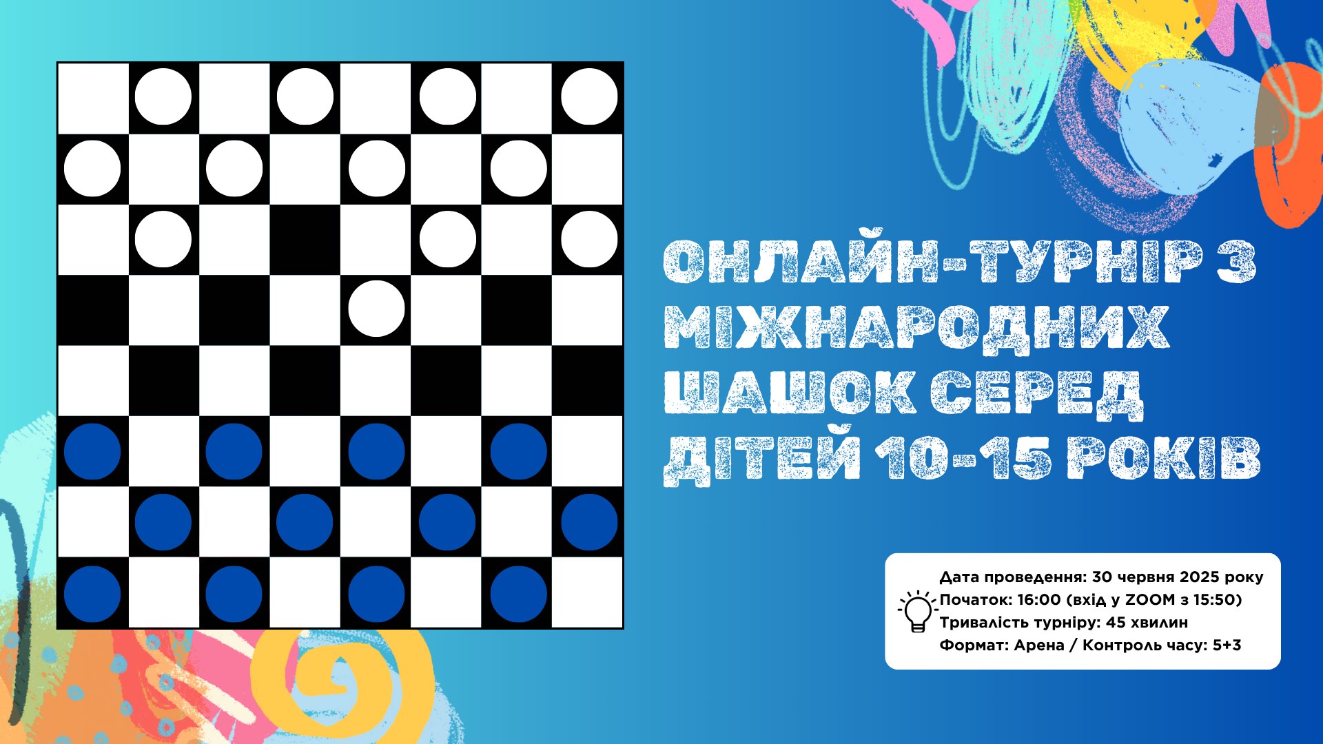 🏆Онлайн-турнір з міжнародних шашок серед дітей 10-15 років!