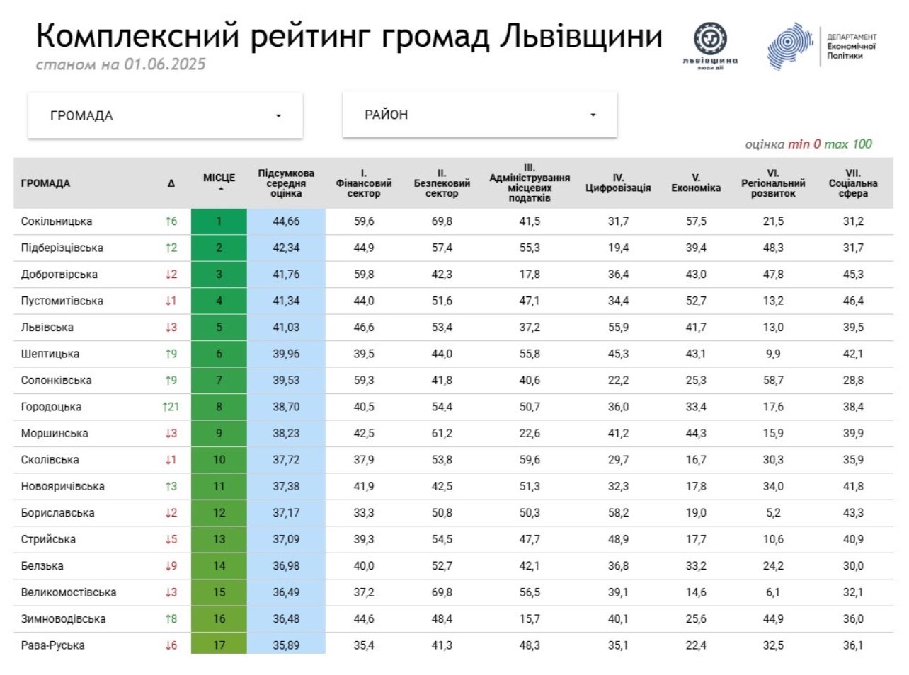 До вашої уваги, оновлений комплексний рейтинг територіальних громад Львівської області, станом на 1 червня 2025 року.