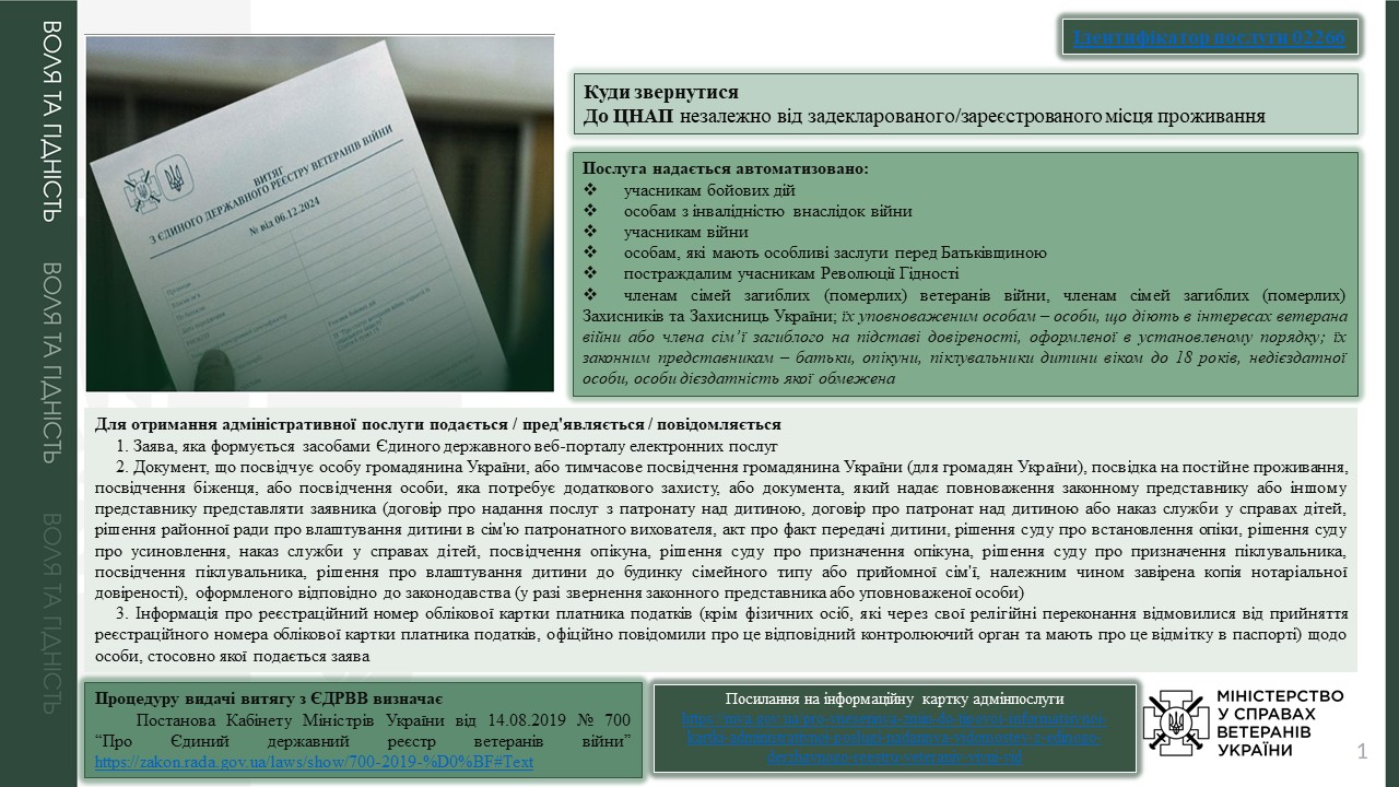Важлива новина для всіх, хто цікавиться або потребує інформації з Єдиного державного реєстру ветеранів війни (ЄДРВВ). Департаментом соціальної політики були оновлені інформаційно-презентаційні матеріали, що стосуються адміністративної послуги – надання відомостей з ЄДРВВ. Це суттєве оновлення покликане зробити процес отримання необхідної інформації більш зрозумілим та доступним для широкого кола осіб, які мають відношення до ветеранів війни, а також для самих ветеранів. Оновлені матеріали є важливим кроком назустріч спрощенню бюрократичних процедур та підвищенню якості обслуговування громадян.