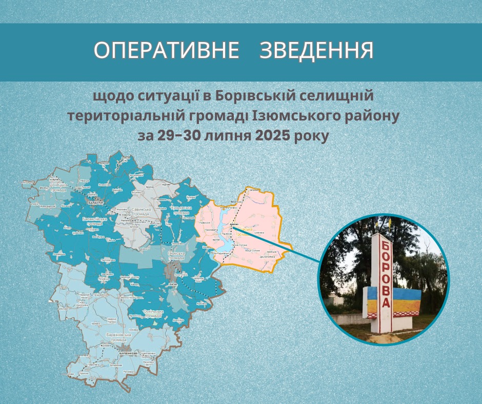 📌 Оперативна інформація про ситуацію в Борівській селищній територіальній громаді Ізюмського району за 29-30 липня 2025 року.