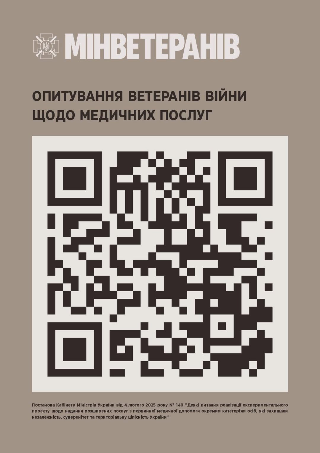 Шановні ветерани, ми запрошуємо вас взяти участь в опитуванні, яке допоможе нам оцінити та покращити систему надання медичних послуг. Ваша думка є надзвичайно важливою для нас, оскільки вона дозволить виявити актуальні потреби та проблеми, з якими ви стикаєтесь.