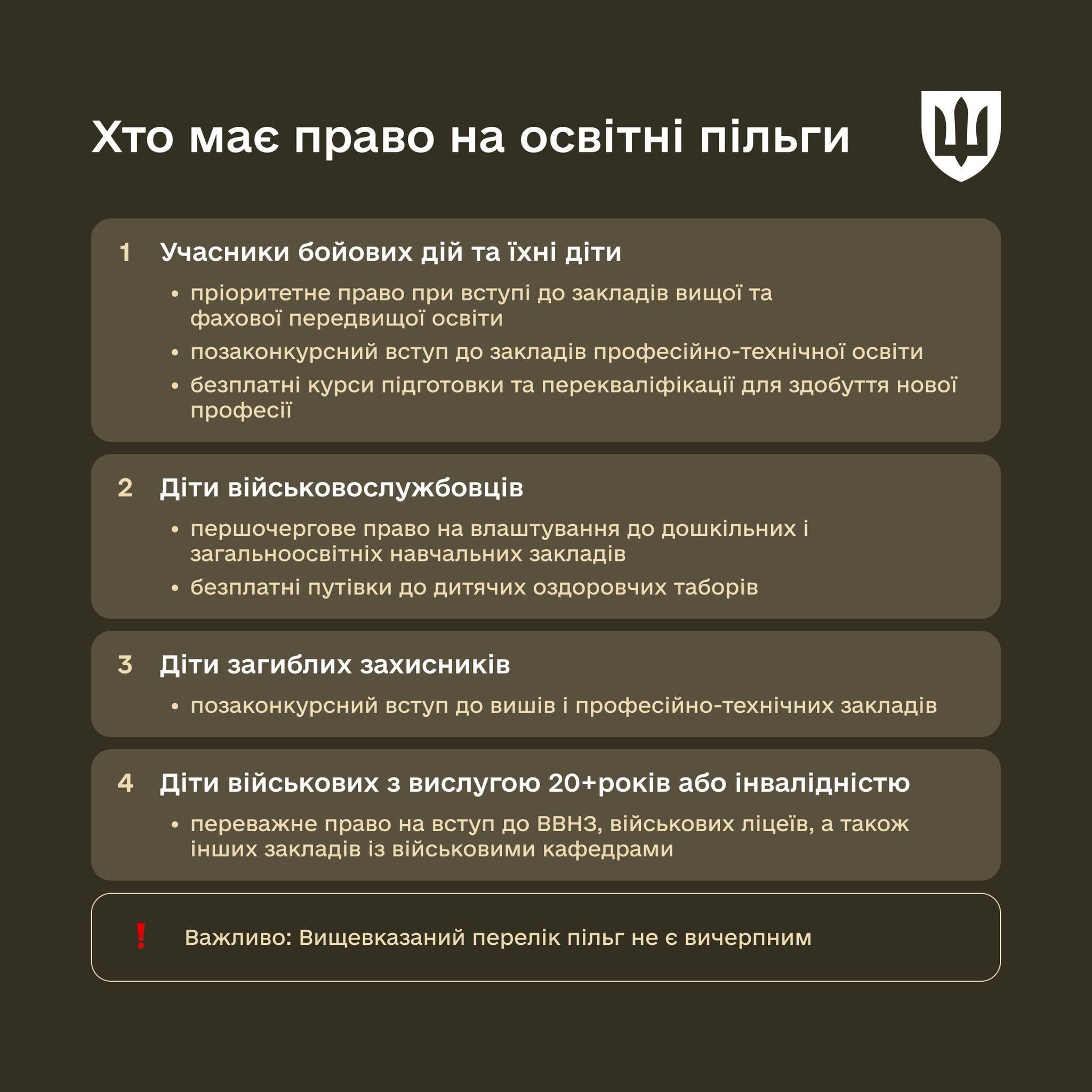 Для дітей військових освіта також є пріоритетом. Вони мають право на отримання державних цільових програм та стипендій, що відкриває двері до кращих навчальних закладів країни. Державна підтримка військових у навчанні є комплексним підходом, що охоплює різні аспекти – від консультаційної допомоги при виборі спеціальності до матеріального забезпечення під час навчання.