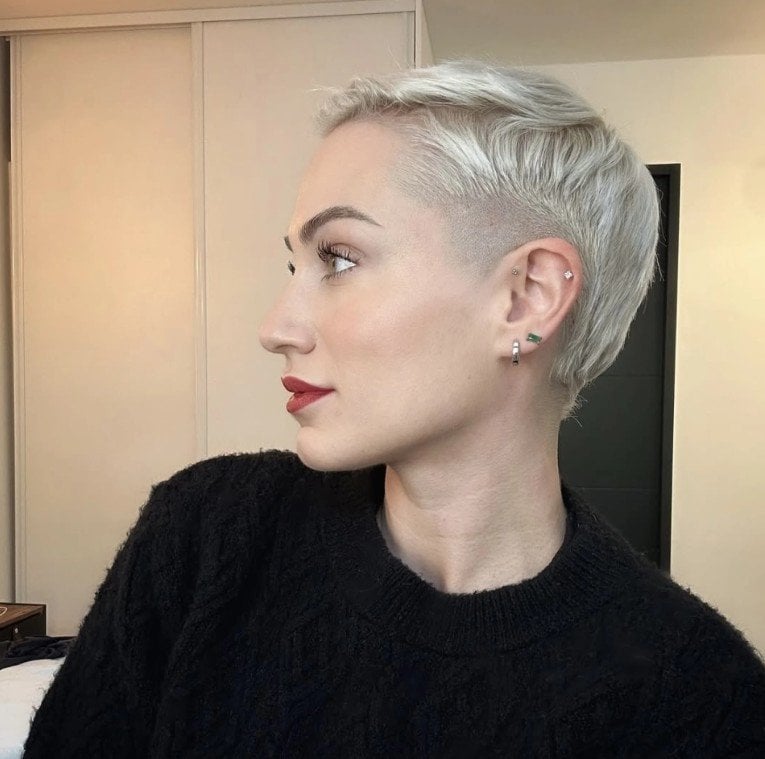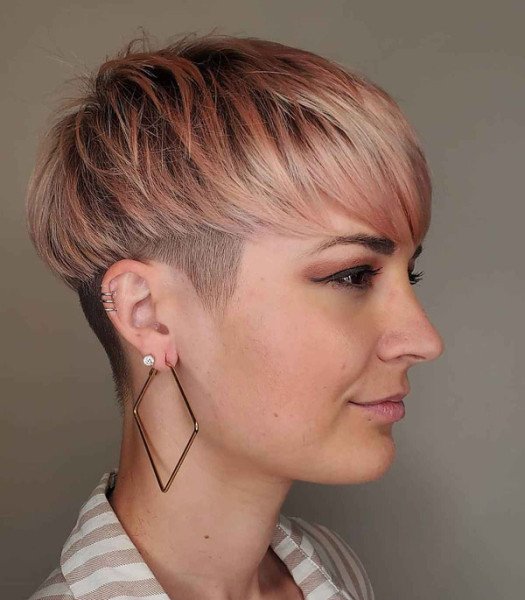 За словами стилістки, ця стрижка — приклад ідеального балансу між сучасною динамікою і жіночністю. Боки та/або потилицю голять дуже коротко, а верх залишають об’ємним і виразним, іноді з видовженим чубчиком або рваними пасмами.