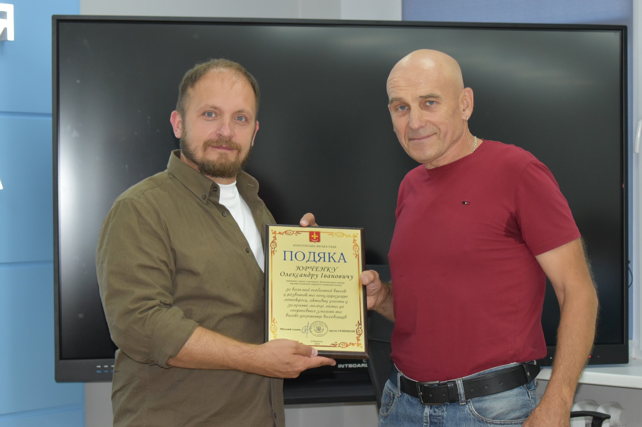 💥Також від А.Семеніхіна нагороди отримали і наставники вихованців гуртків з картингу та мотокросу – ЮРЧЕНКО Олександр Іванович -за вагомий особистий внесок у розвиток та популяризацію мотокросу, активну участь у залученні молоді міста до спортивних змагань та високі досягнення вихованців та ПОЛОЗОВ Валентин Вікторович – за вагомий особистий внесок у розвиток та популяризацію картингового спорту, активну участь у залученні молоді міста до спортивних змагань та високі досягнення вихованців.