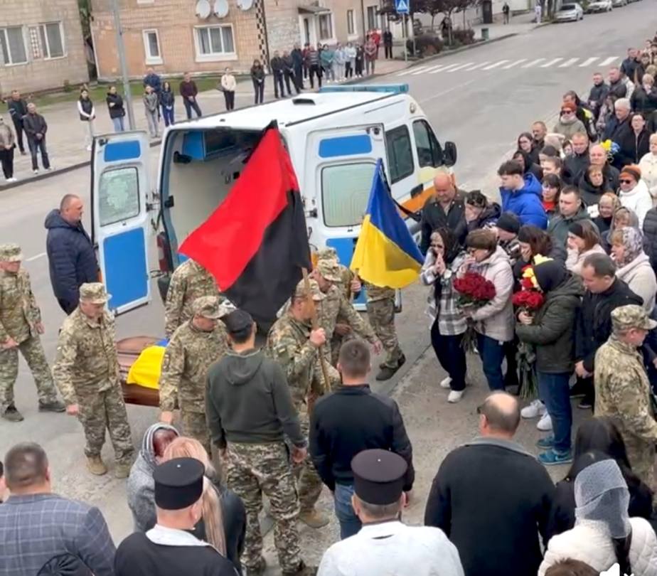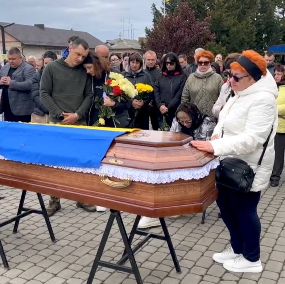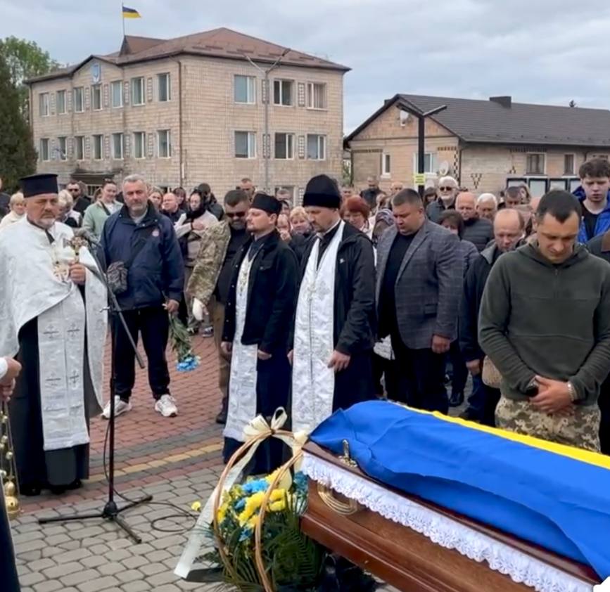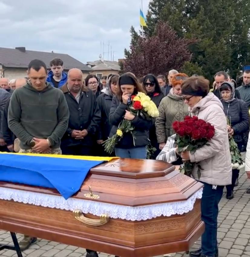 Круг домовини, вкритої стягом, – сумуюча родина загиблого, сльози та ридання. Востаннє прощається сьогодні з батьком й син, котрий теж боронить українську землю від російської орди. Кожен присутній відчував невимовний біль втрати.