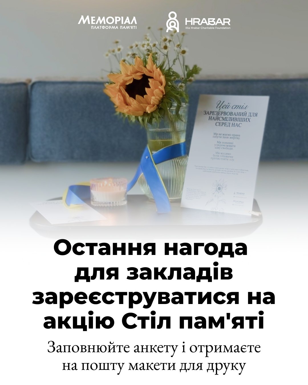 Стіл пам’яті: Остання нагода для реєстрації закладів