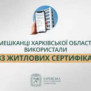 Наразі з використанням житлових сертифікатів придбано 2 975 об’єктів нерухомості на території Харківської області – 2 472 квартири та 503 приватних житлових будинків. Загальна вартість придбаного майна складає понад 6,7 мільярда гривень. Вже використано більш як 4 350 житлових сертифікатів, отриманих за зруйновані об’єкти нерухомого майна в Харківській області. Більшість отримувачів компенсації придбали житло у Харкові, Ізюмській та Балаклійській територіальних громадах, решта – на території Київської, Львівської, Дніпропетровської, Полтавської, Закарпатської та інших областей.