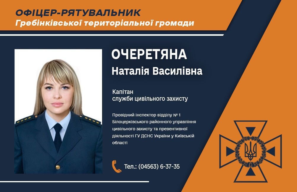 З усіх питань, що стосуються безпеки, ви можете звернутися до офіцера-рятувальника Наталії Василівни за телефоном: **(04563) 6-37-35**. Ваш дзвінок може стати вирішальним для забезпечення безпеки як вашої родини, так і всієї громади.