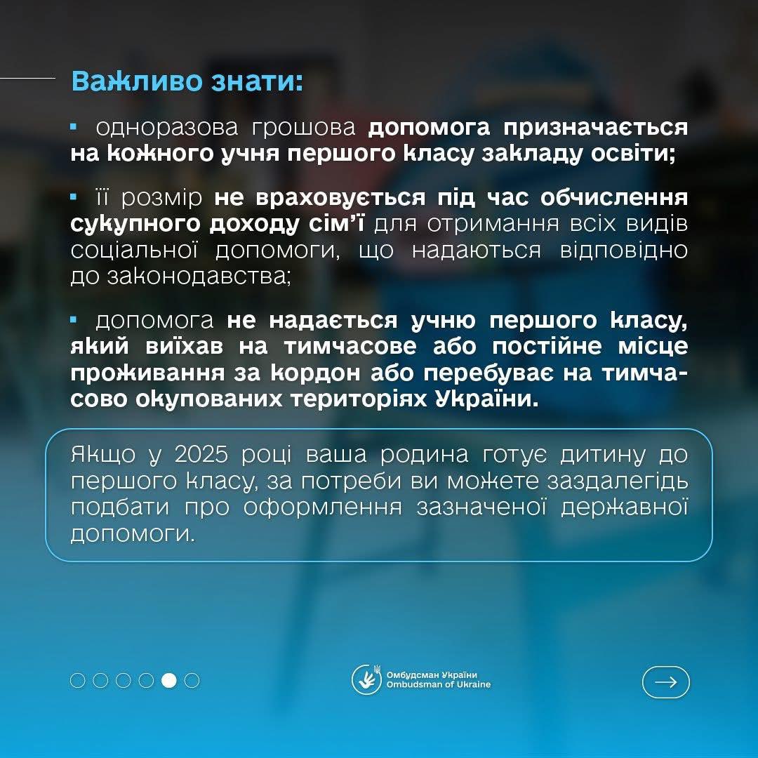 Важливе завдання цієї підтримки – стимулювати родини, які виховують дітей, залишатися в Україні. Тому виплата надається за умови, що дитина піде навчатись саме до української школи – на території нашої країни.