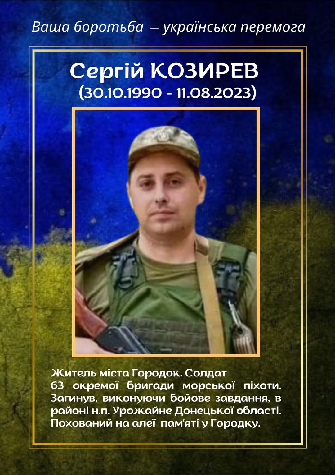 Сергій Козирев, городківчанин, воїн 36-ї окремої бригади морської піхоти, пішов на захист України у найважчий час.