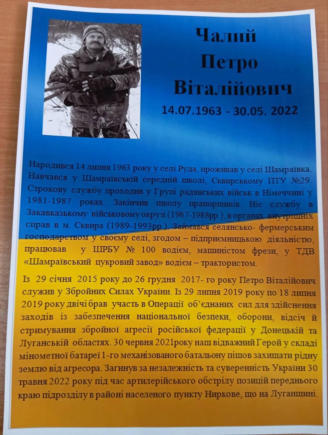 🕯️Вшанування пам’яті Героя: Сьогодні минає три роки з дня, коли відважний воїн Петро Віталійович Чалий віддав своє життя у російсько-українській війні, захищаючи нашу рідну землю, наші сім’ї та наше майбутнє. Ми завжди пам’ятаємо Героїв, які поклали життя за Україну. 🪔
