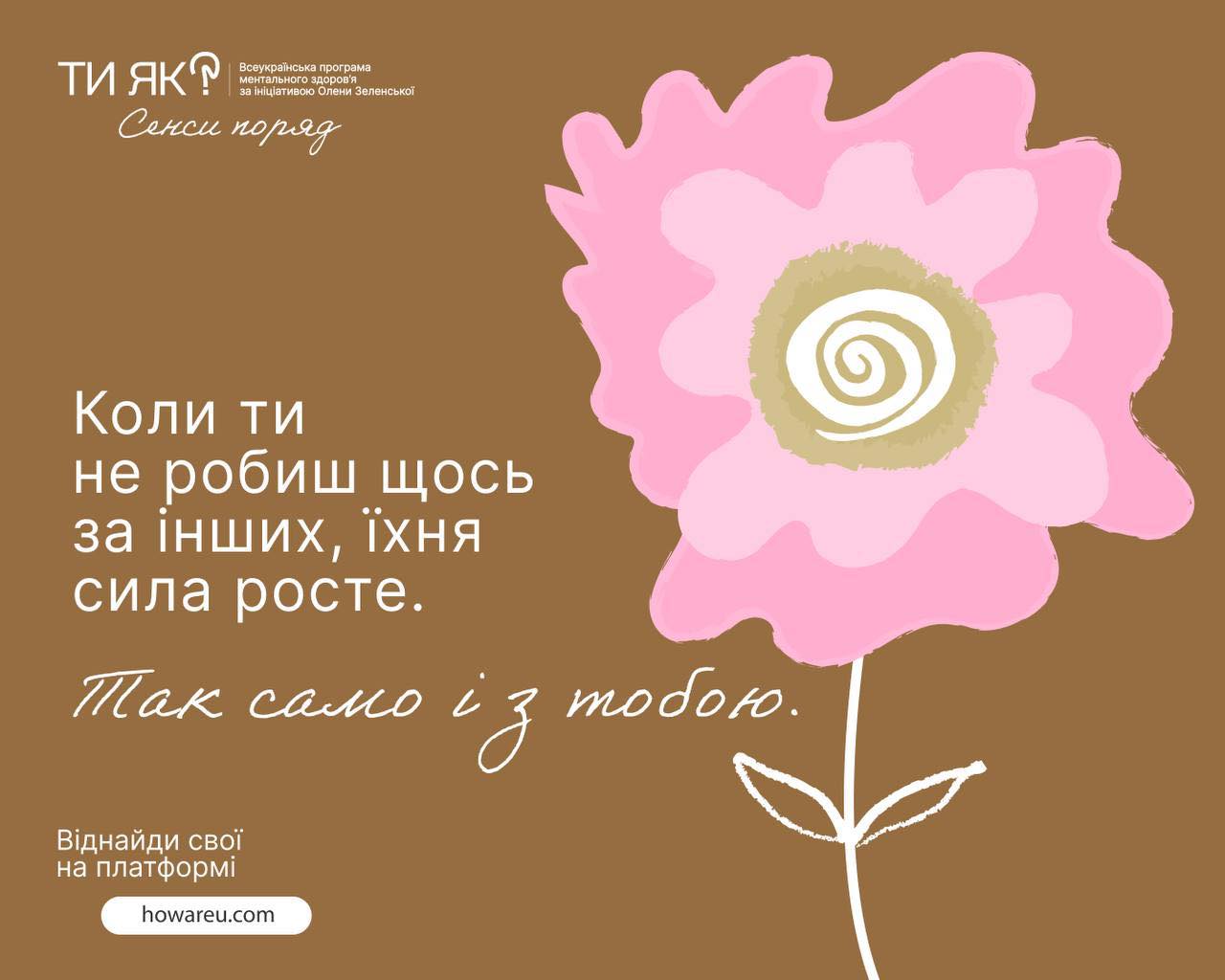 Важливість ментального здоров’я: підтримка без втручання. Пам’ятайте: підтримка – це не завжди втручання. У травні, в рамках Місяця обізнаності про ментальне здоров’я, ми акцентуємо увагу на важливості турботи про себе та близьких. Всеукраїнська програма ментального здоров’я «Ти як?» за ініціативою Олени Зеленської нагадує, що піклуватися про себе – це нормально.