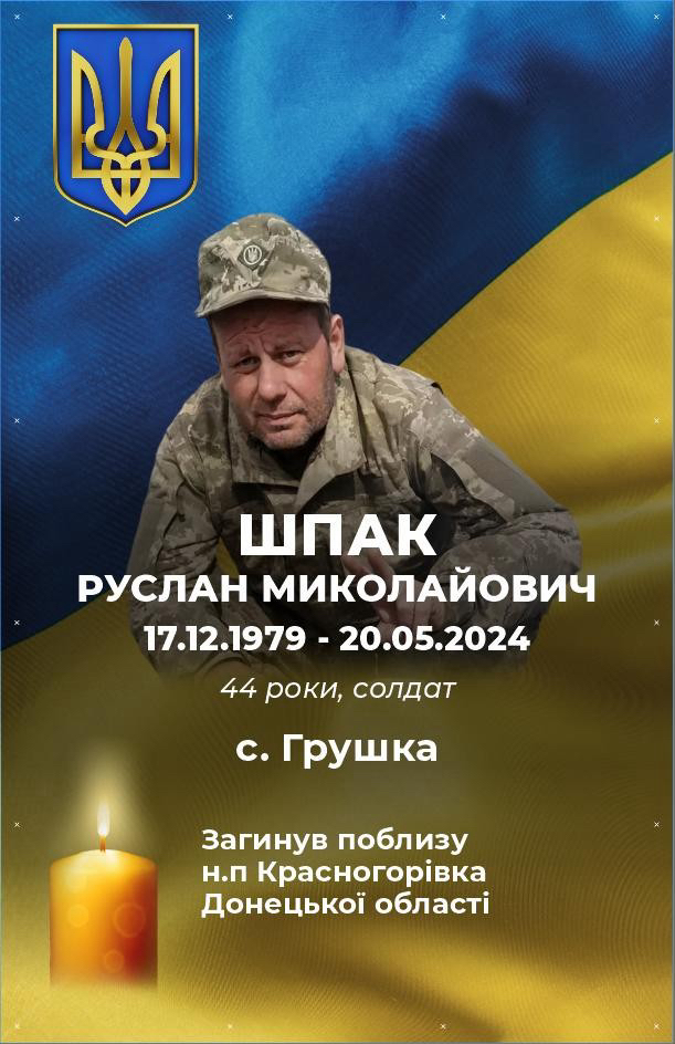 Висловлюємо щирі співчуття рідним та близьким Руслана Миколайовича. Його героїчний вчинок ніколи не буде забутий. Він віддав своє життя за Україну, за її свободу та незалежність, за кожного її жителя. Пам’ять про нього назавжди залишиться в наших серцях! Вічна слава Герою! Пам’ятаємо кожного, хто віддав життя за мирне майбутнє України. Низький уклін Герою Руслан Шпак!