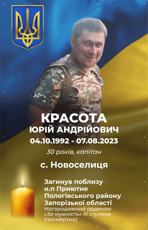 Висловлюємо щирі співчуття рідним та близьким Юрія Красоти. Він віддав своє життя за Україну, за кожного її жителя та назавжди залишиться в наших серцях! Вічна слава Герою! Пам’ятаємо кожного.
