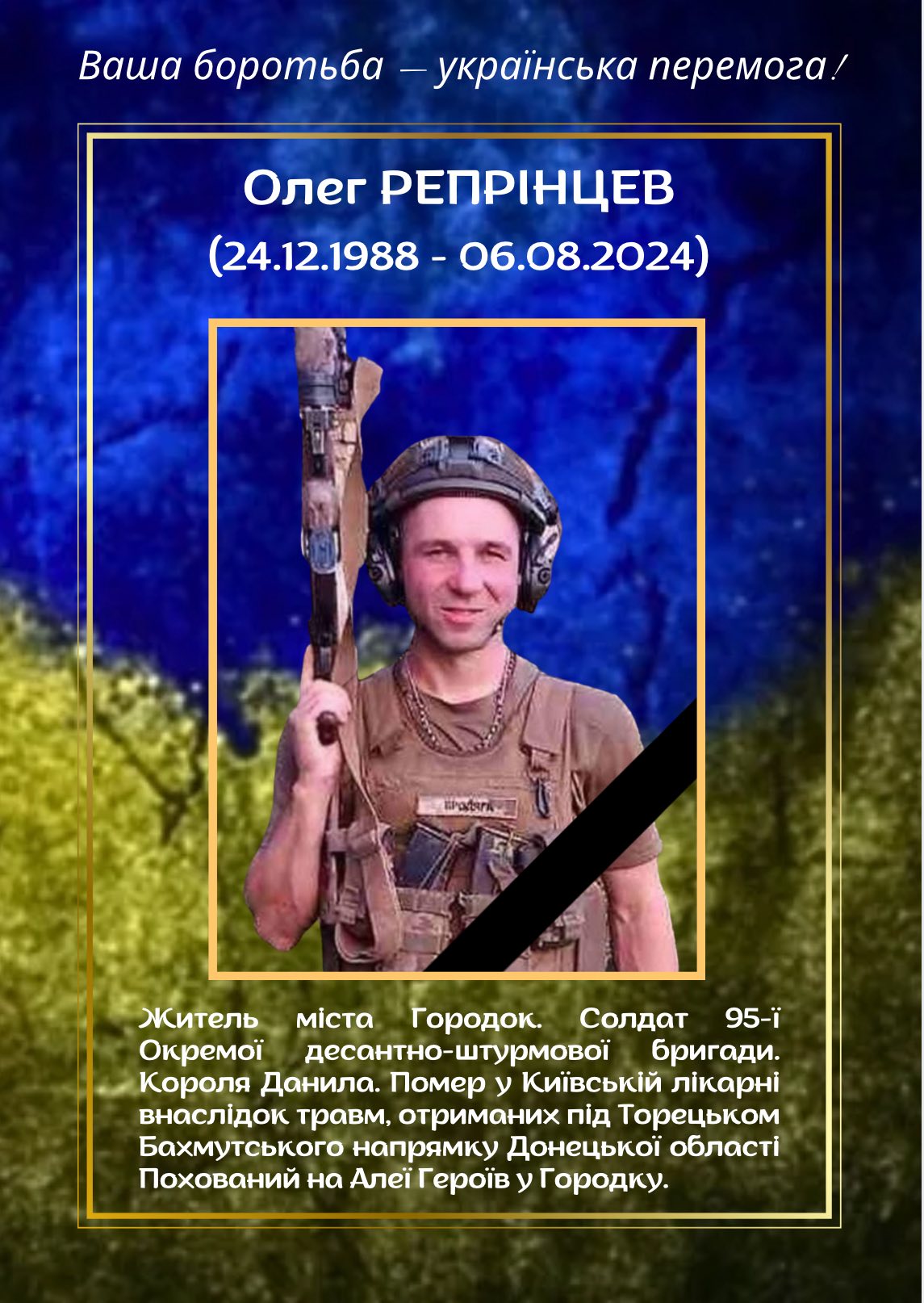 🇺🇦Олег Репрінцев (24.12.1988 р.н.) – воїн 95-ї окремої десантно-штурмової бригади.
