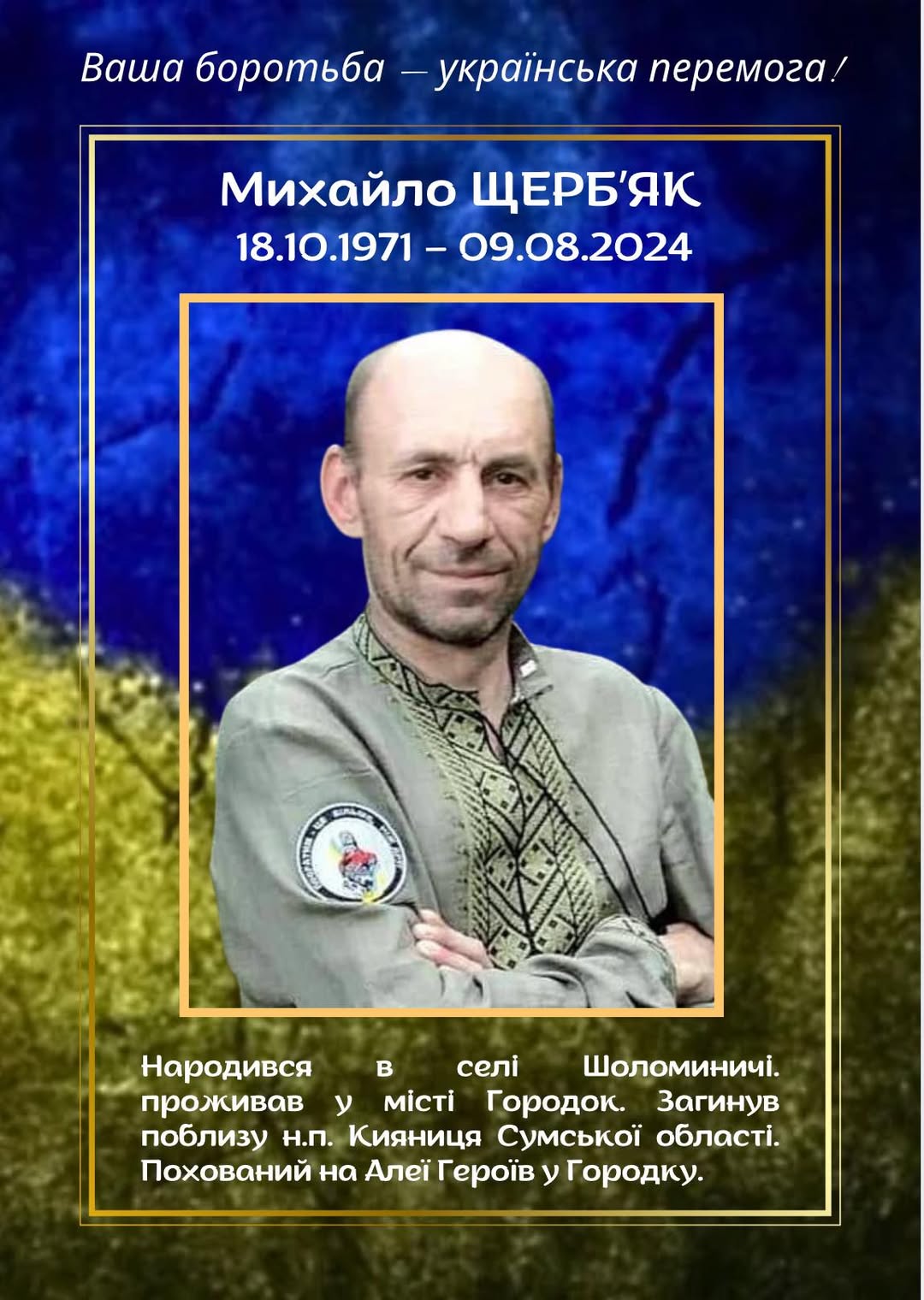 Минув рік, відколи наш земляк, Михайло ЩЕРБ’ЯК (18.10.1971 — 09.08.2024), став до лав війська небесного.
